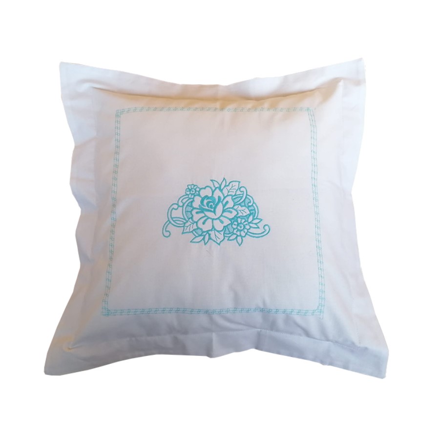 Combinatia extrem de vie intre culorile alb si albastru turcoaz, broderia si contrastul de culori, au capacitatea de a energiza o camera si de a crea o atmosfera aerisita si curata.