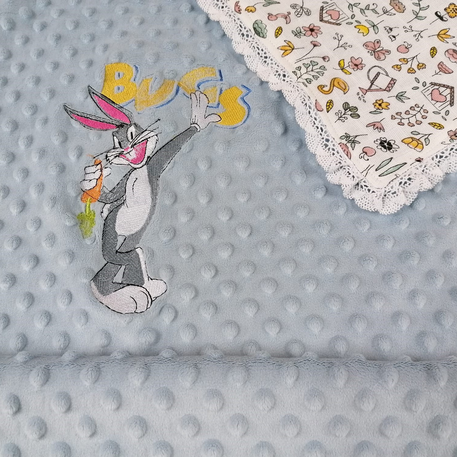 Paturica cu broderie si bordura din dantela crosetata din bumbac si fata dubla din muselina este un decor minunat pentru camera copiilor. Datorita texturii catifelate, confectionata din plus minky si dublata cu muselina din bumbac 100%,va atrage atat sugarii, cat si copiii mai mari. Este perfecta ca decor de fotografiere, patura de jocuri sau baldachin.