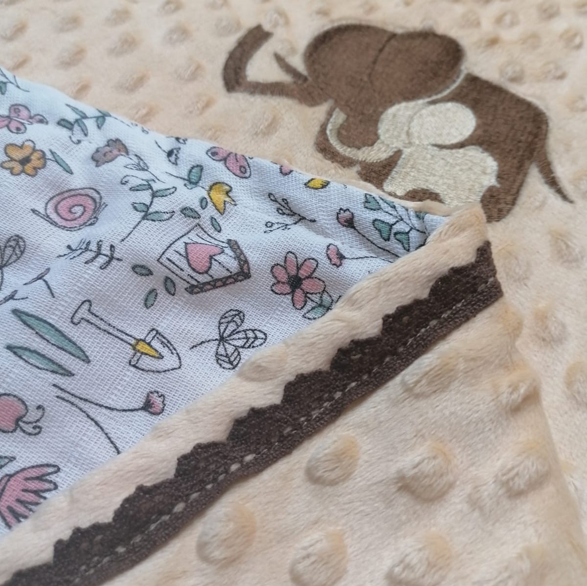 Paturica cu broderie si bordura din dantela crosetata din bumbac si fata dubla din muselina este un decor minunat pentru camera copiilor. Datorita texturi catifelate, confectionat din plus minky si dublat cu muselina din bumbac 100%,va atrage atat sugarii, cat si copiii mai mari. Este perfect ca decor de fotografiere, patura de jocuri sau baldachin.