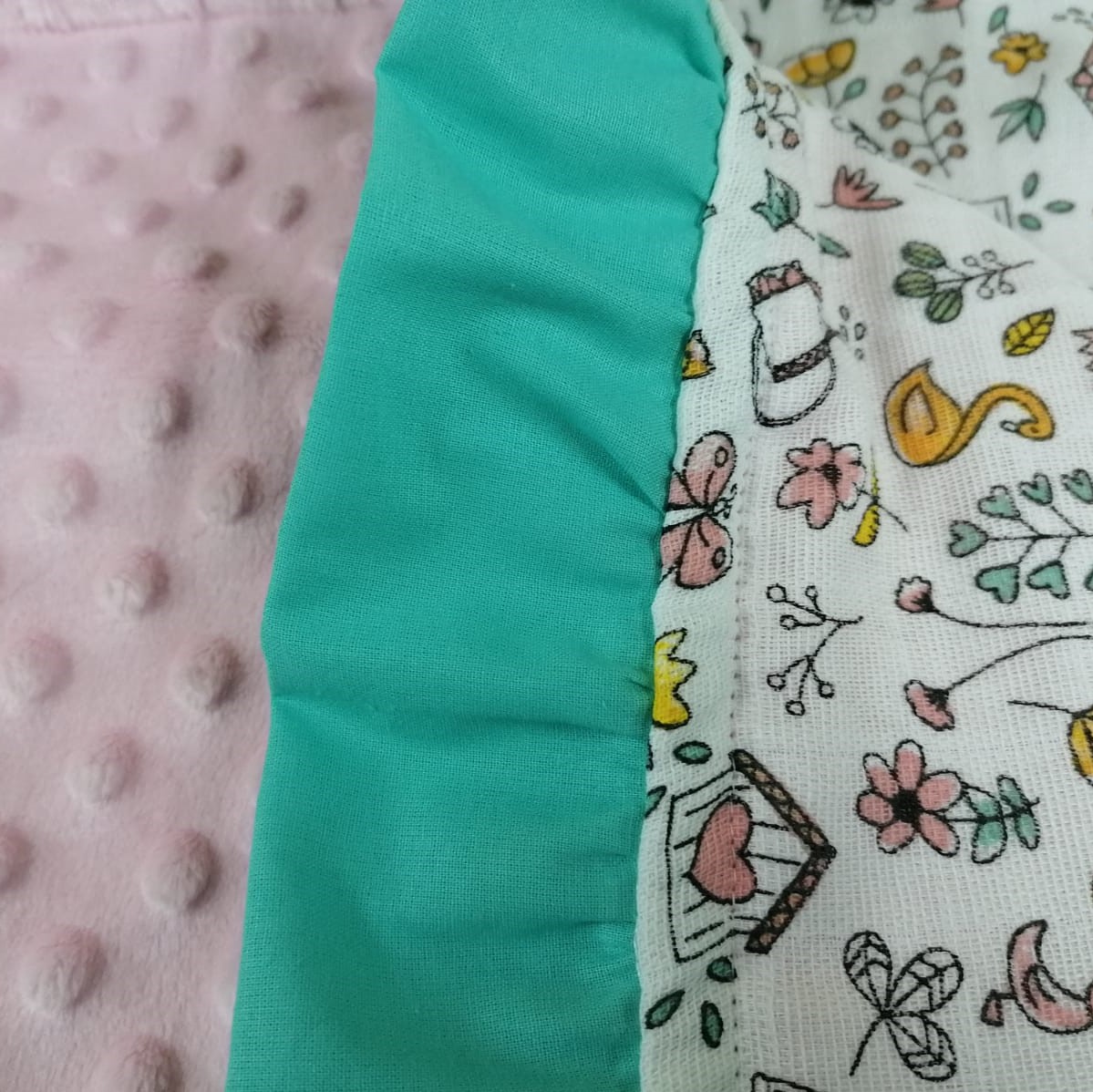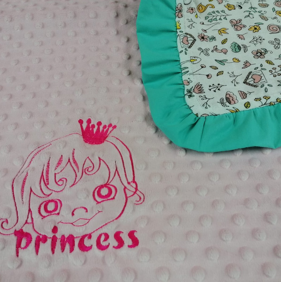 Paturica cu broderie si volane turcoaz din bumbac si fata dubla din muselina este un decor minunat pentru camera copiilor, dormitor sau sufragerie. Datorita texturi catifelate, confectionat din plus minky si dublat cu muselina din bumbac 100%,va atrage atat sugarii, cat si copiii mai mari. Este perfect ca decor de fotografiere, patura de jocuri sau baldachin.