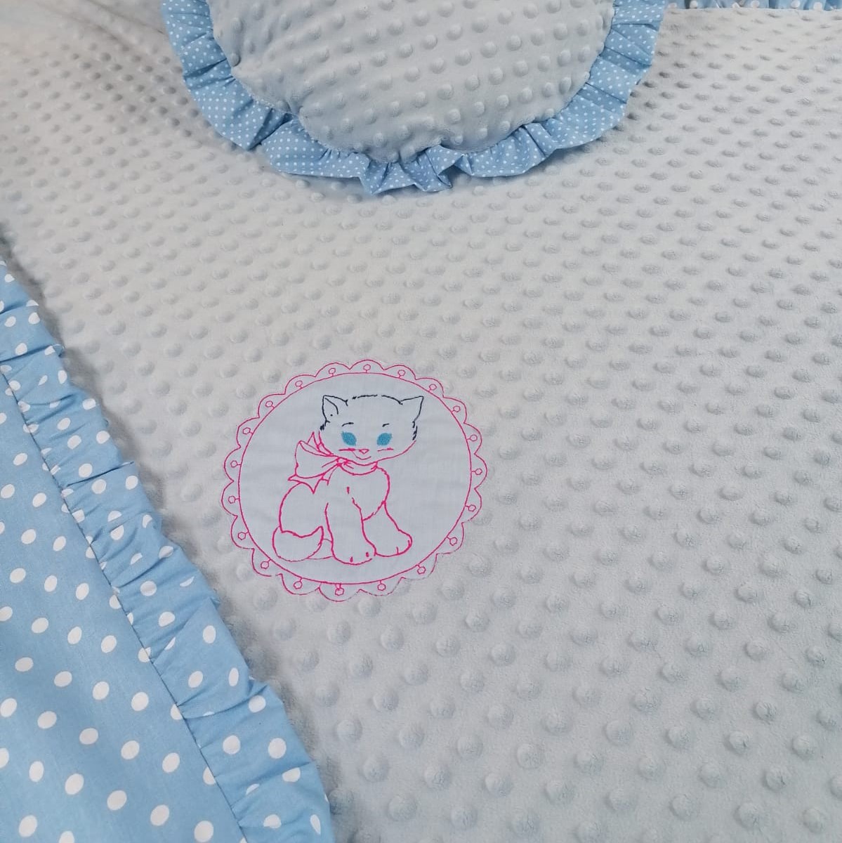 Paturica cu volane, buline, broderie si fata dubla este un decor minunat pentru camera copiilor, dormitor sau sufragerie. Datorita texturi catifelate, confectionat din plus minky, va atrage atat sugarii, cat si copiii mai mari. Este perfect ca decor de fotografiere, perna de jocuri sau baldachin.