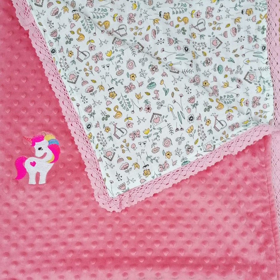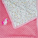 Paturica cu broderie si bordura din dantela crosetata din bumbac si fata dubla din muselina este un decor minunat pentru camera copiilor. Datorita texturii catifelate, confectionata din plus minky si dublata cu muselina din bumbac 100%,va atrage atat sugarii, cat si copiii mai mari. Este perfecta ca decor de fotografiere, patura de jocuri sau baldachin.