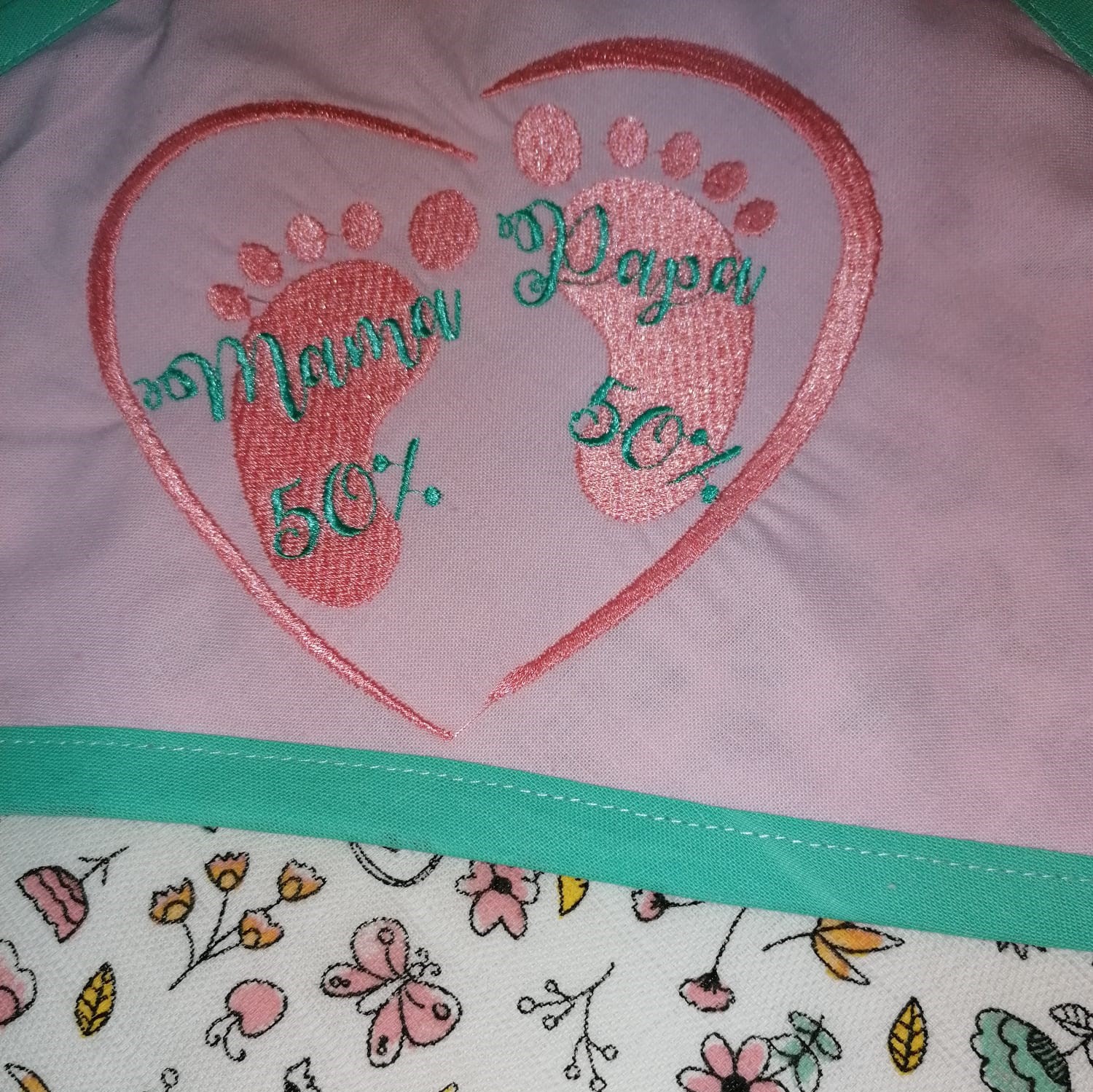 Paturica cu broderie si gluga este confectionata din muselina la interior si finet, bumbac 100%, la exterior.
