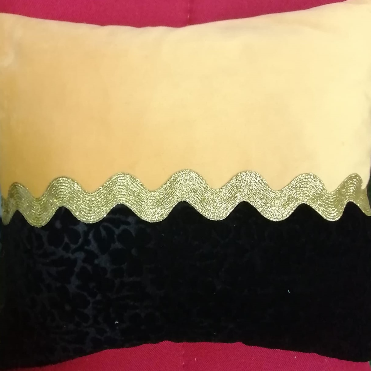 Perna decorativa 40 x 40 cm, Casa Bucuriei, galben/negru, catifea
