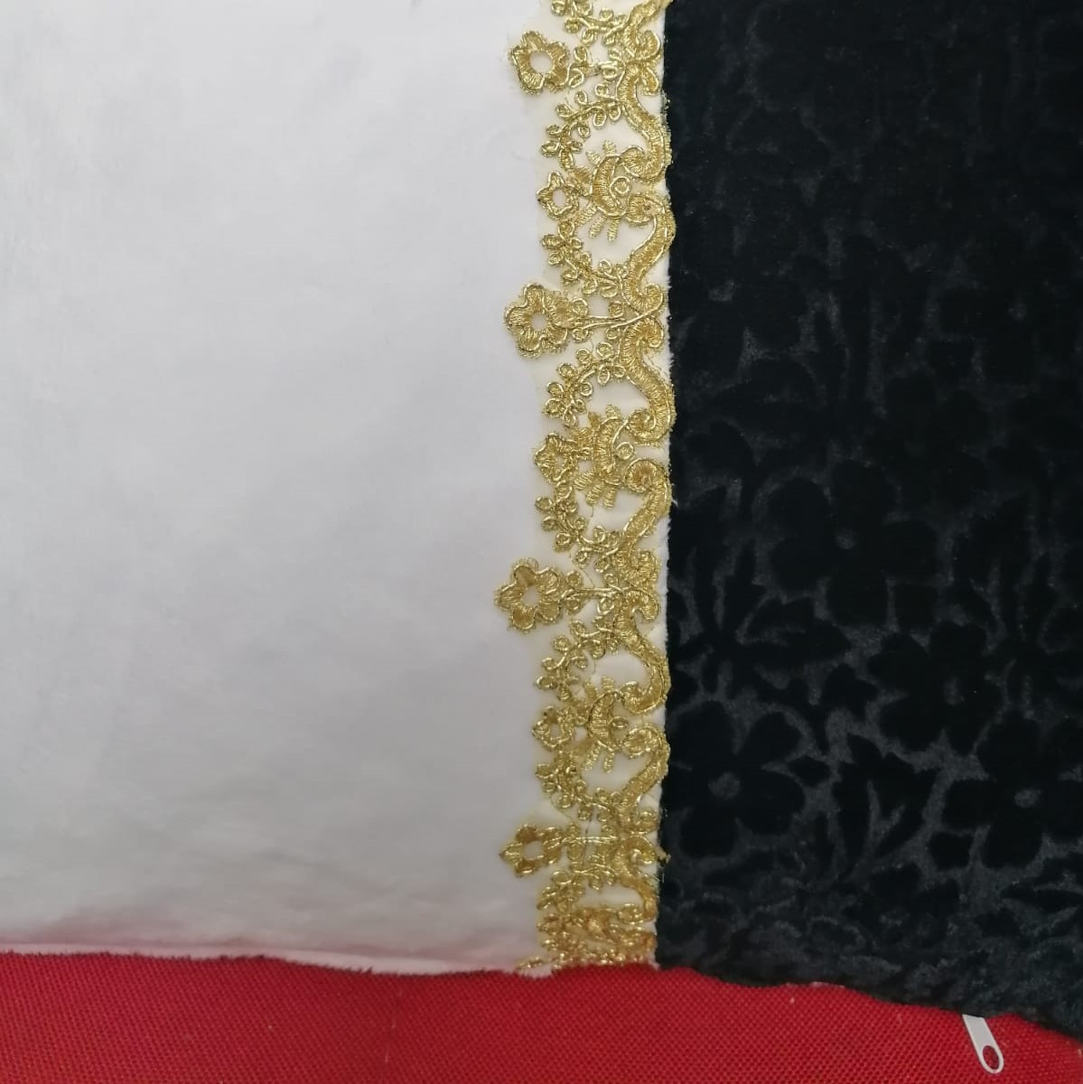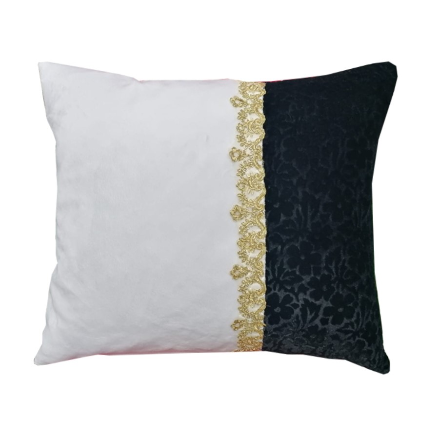 Perna decorativa 40 x 45 cm, Casa Bucuriei, alb/negru, catifea