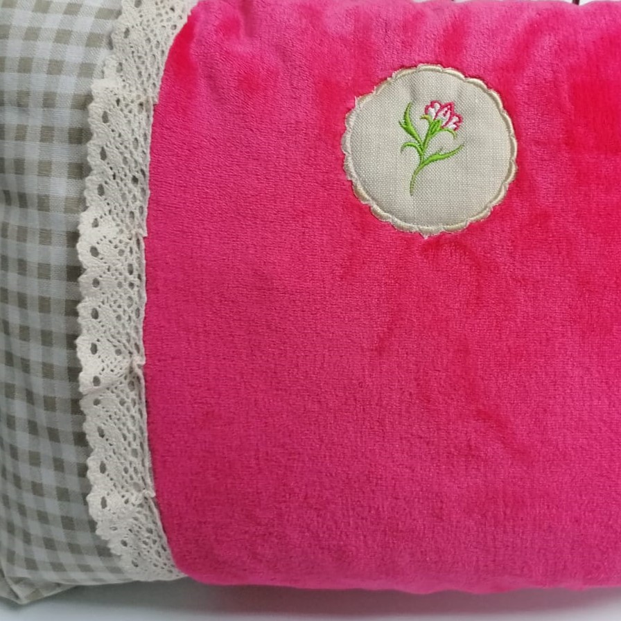 Perna decorativa cu broderie si dantela bumbac, roz/bej, fleece, 40/55 cm