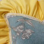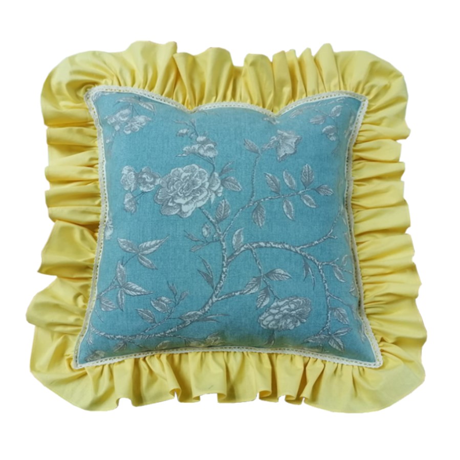 Este potrivit sa le asezati pe canapeaua dvs., in dormitorul dvs., in camera de zi, in camera copilului, pe terasa si oriunde doriti. Pernele , confectionate in atelierul nostru, sunt umplute confortabil si ornamentate cu dantela crosetata din bumbac de culoare crem si volanase galbene.