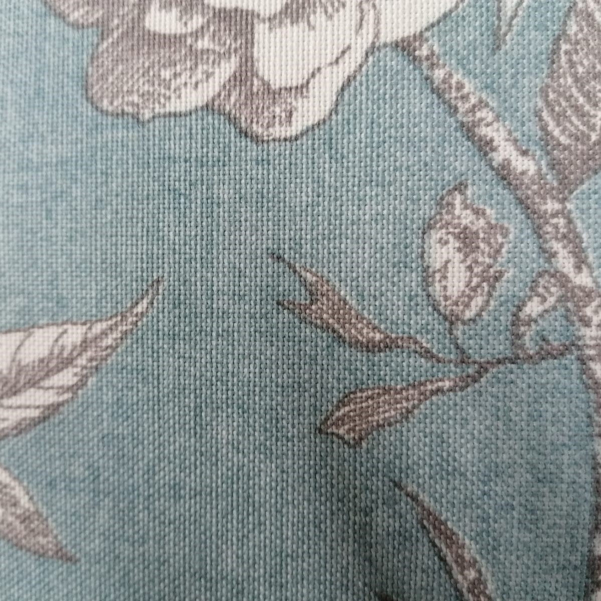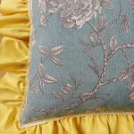 Perna decorativa cu motiv floral in stilul eco, stil in tendintele si propunerile designerilor pentru anul acesta, confectionata din bumbac si in, in culori rupte din natura, turcoaz, galben, crem, bej si gri.