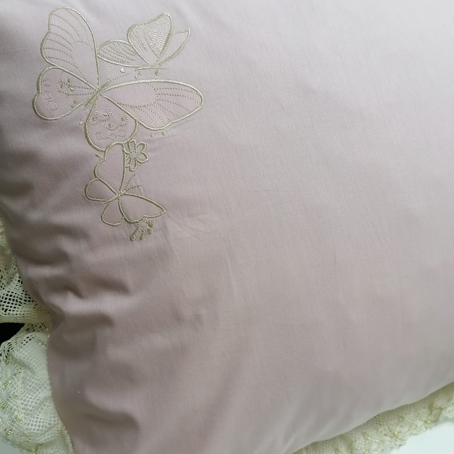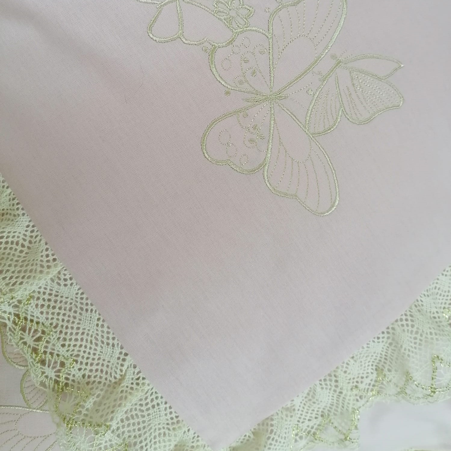 Set 2 Fete de perna cu dantela si broderie, Casa Bucuriei, model Alessia, roz prafuit, bumbac 100%, 40 cm x 40 cm