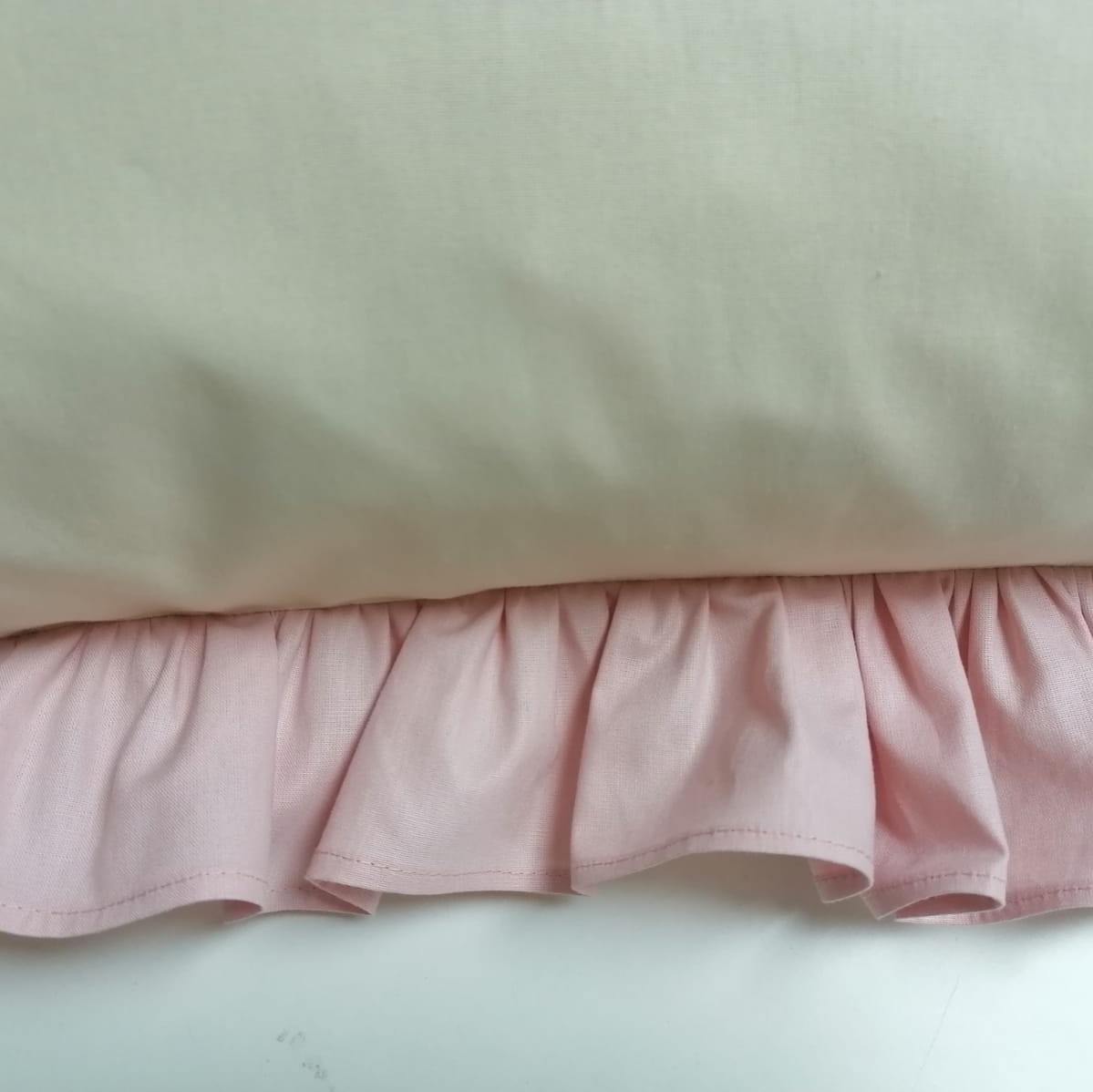 Set 2 Fete de perna cu volanase si broderie, Casa Bucuriei, model Alessia, crem/roz prafuit, bumbac 100%, 60 cm x 60 cm