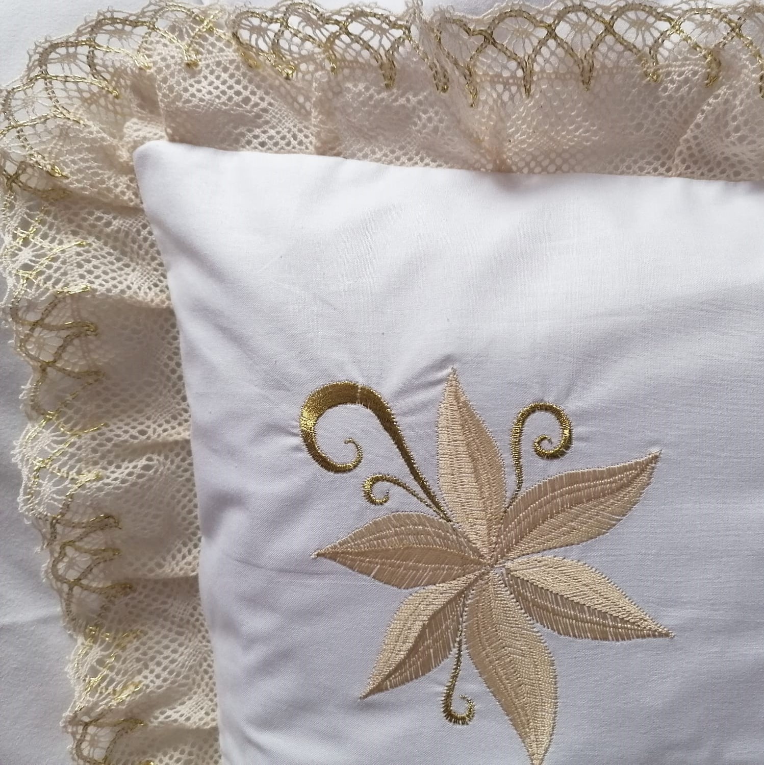 Combinatia clasica intre culori pastelate, finisajele cu dantela din bumbac si broderia, au capacitatea de a energiza o camera si de a crea o atmosfera aerisita, delicata si placuta, unde veti avea senzatia ca respirati aer curat. Pentru a intregi nivelul de confort si din punct de vedere senzitiv, nu doar vizual, materialul folosit pentru confectionarea fetei de perna, bumbacul natural fabricat din planta cu acelasi nume, este un produs non-alergen si poate reprezenta alegerea potrivita de material textil, chiar si pentru copii sau persoanele cu pielea sensibila.