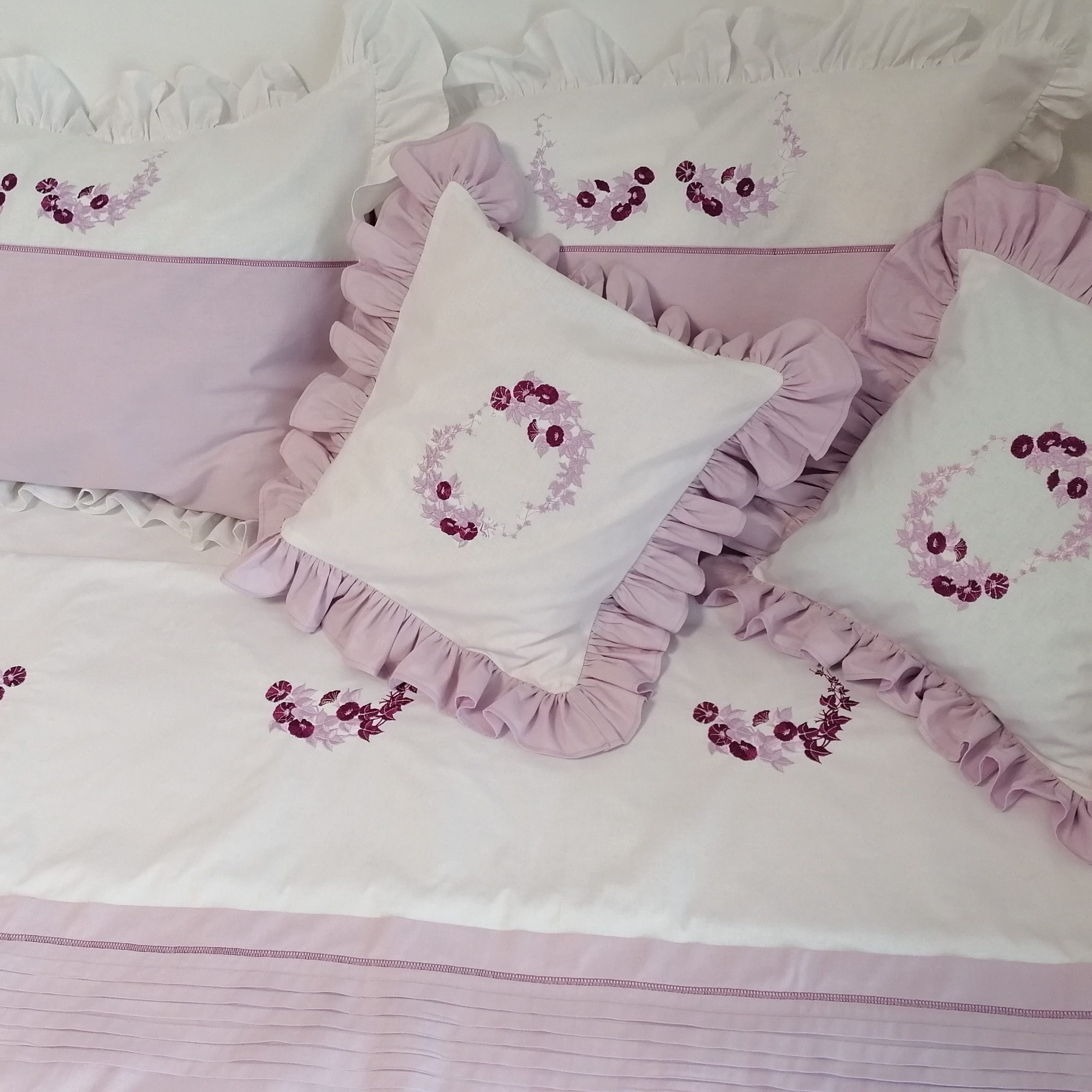 Setul de fete de perna este lucrat manual cu grija la fiecare detaliu in atelierul nostru.