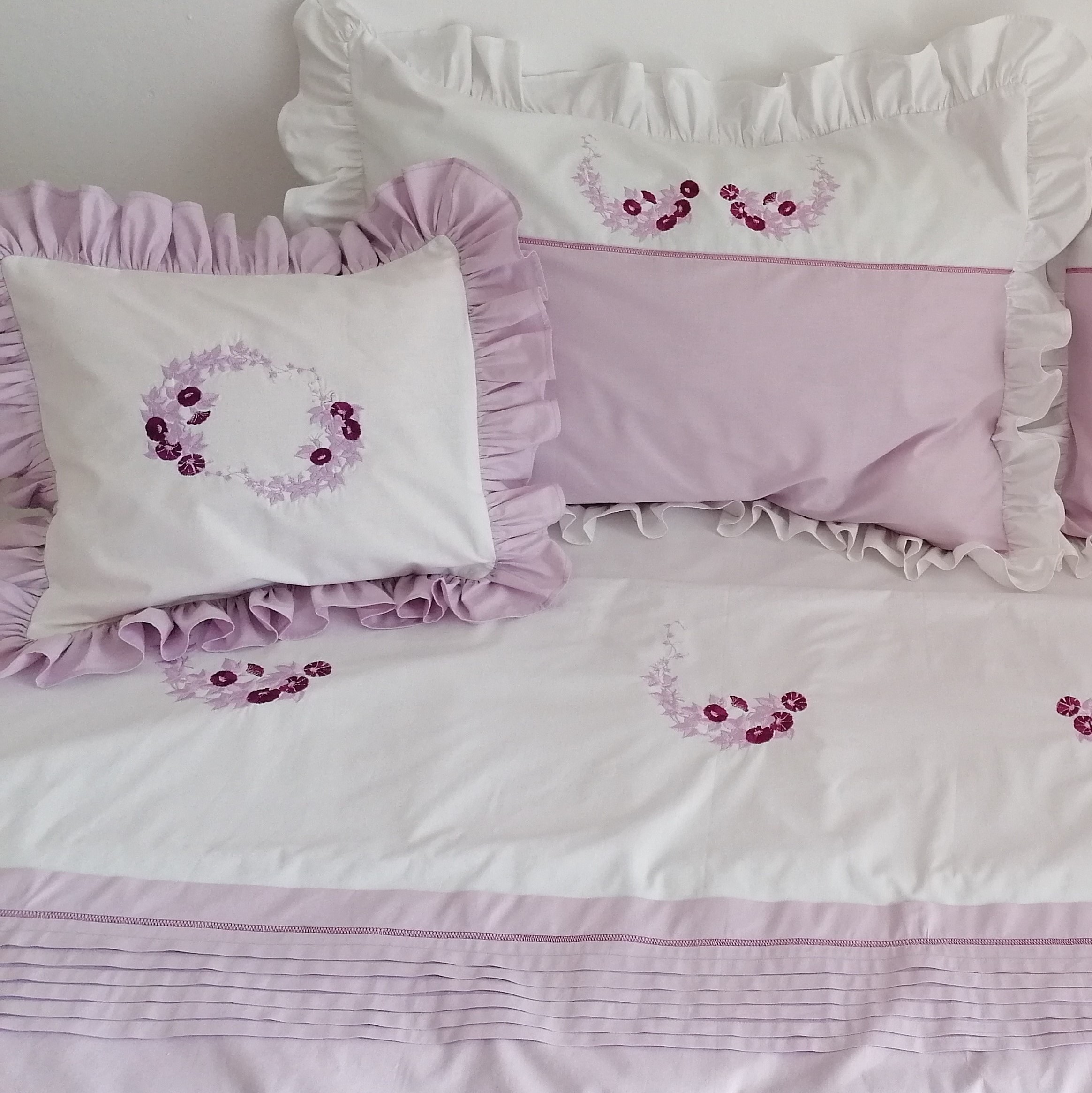 Combinatia intre culori, finisajele in cusaturi decorative si broderia, au capacitatea de a energiza o camera si de a crea o atmosfera aerisita, delicata si placuta, unde veti avea senzatia ca respirati aer curat. Pentru a intregi nivelul de confort si din punct de vedere senzitiv, nu doar vizual, materialul folosit pentru confectionarea fetei de perna, bumbacul natural fabricat din planta cu acelasi nume, este un produs non-alergen si poate reprezenta alegerea potrivita de material textil, chiar si pentru copii sau persoanele cu pielea sensibila.