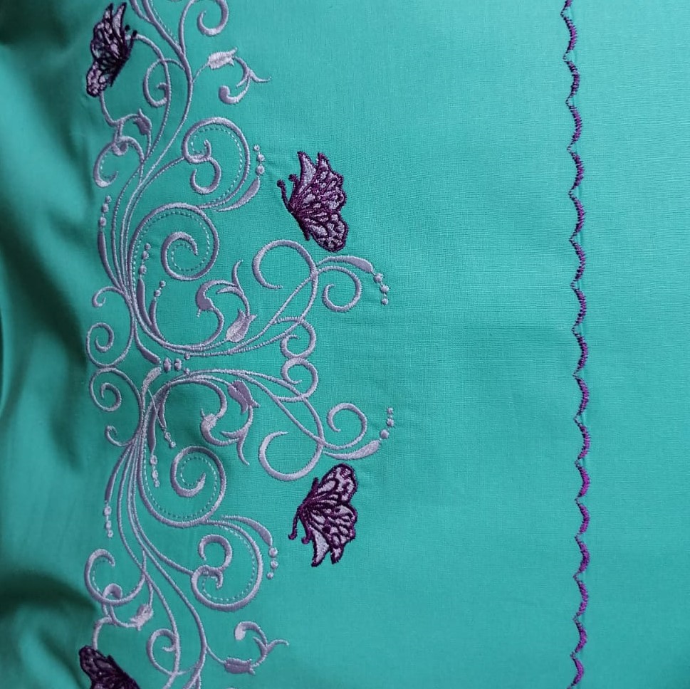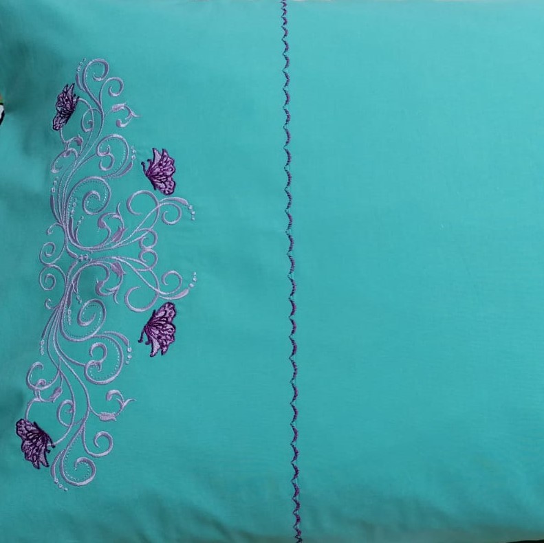 Set 2 Fete perna brodate 40 x 60 cm, Casa Bucuriei, model Eva, verde turcoaz/mov, bumbac ranforce 100%, doua fete