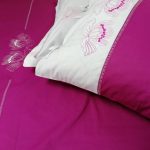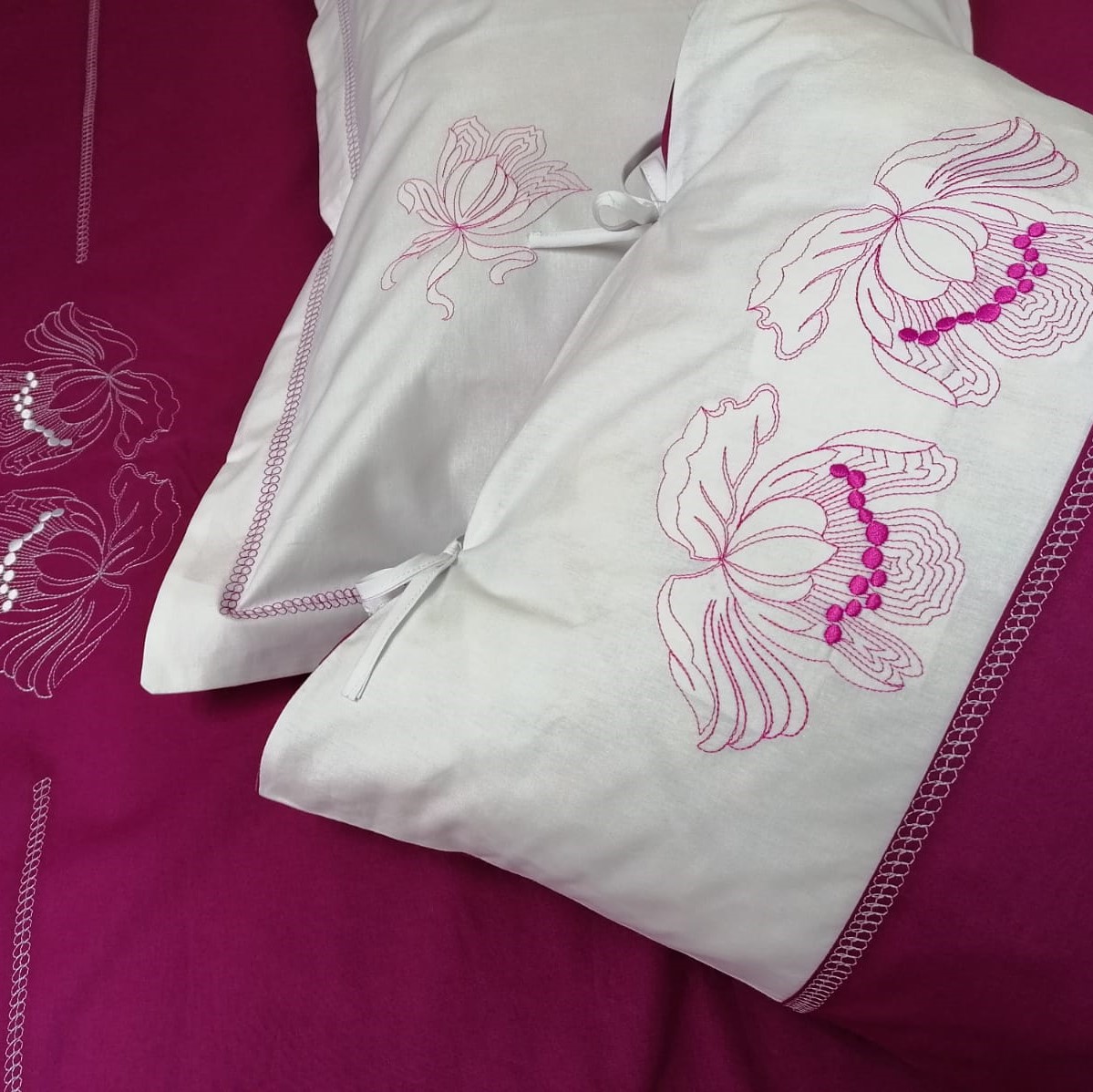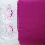 Set 2 Fete perna brodate 40 x 60 cm, Casa Bucuriei, model Iris, fucsia/alb, bumbac ranforce 100%, doua fete