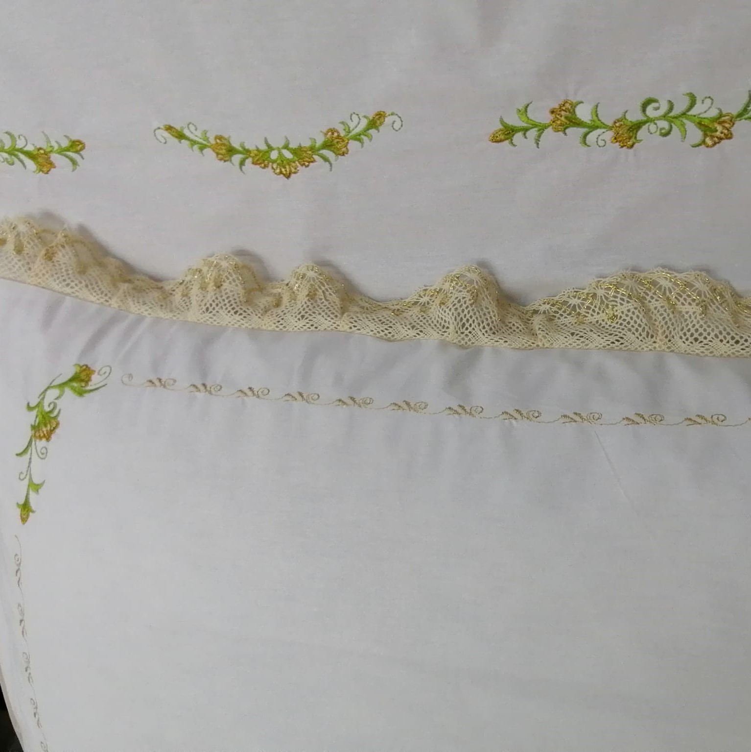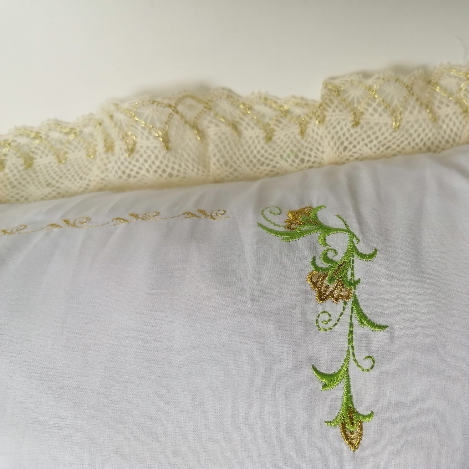 Set 2 Fete perna brodate 45 x 45 cm, Casa Bucuriei, model Dulcis, alb/bej, bumbac percale 100%, doua fete