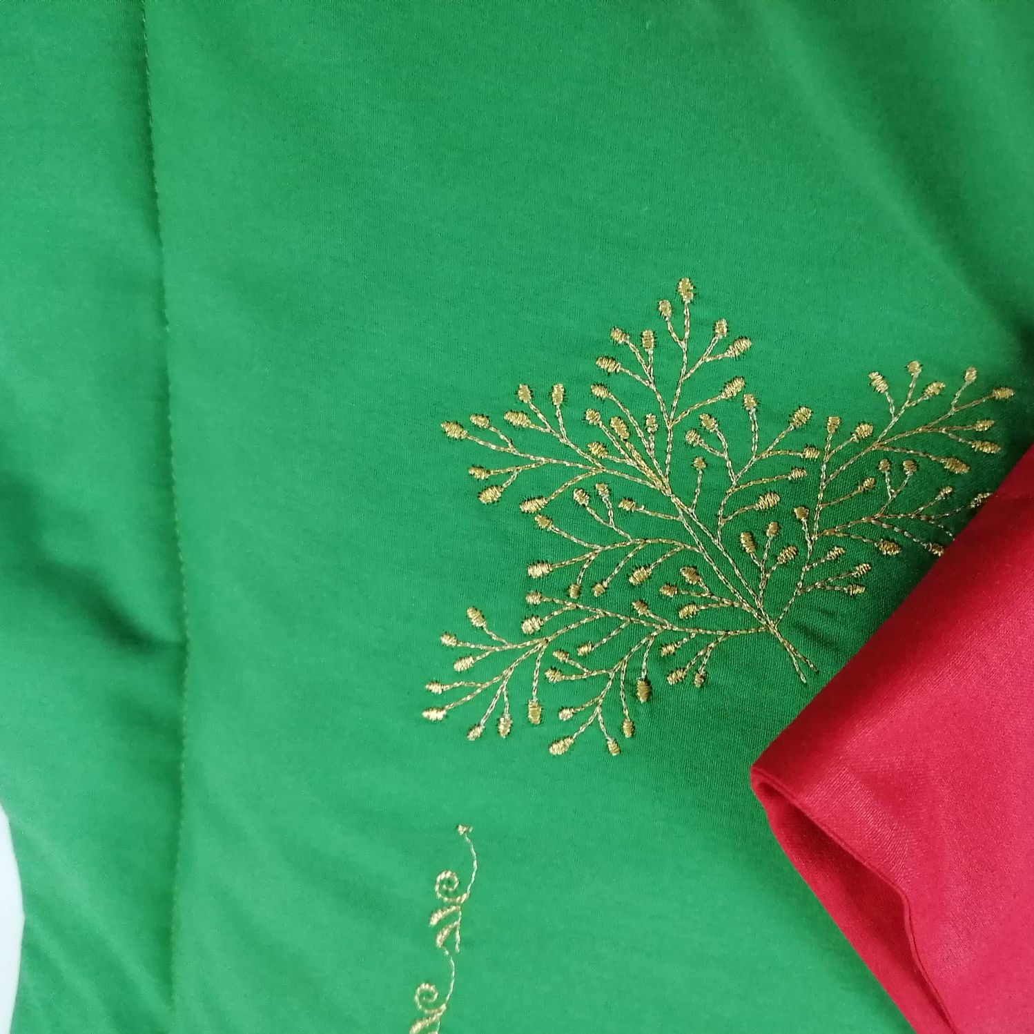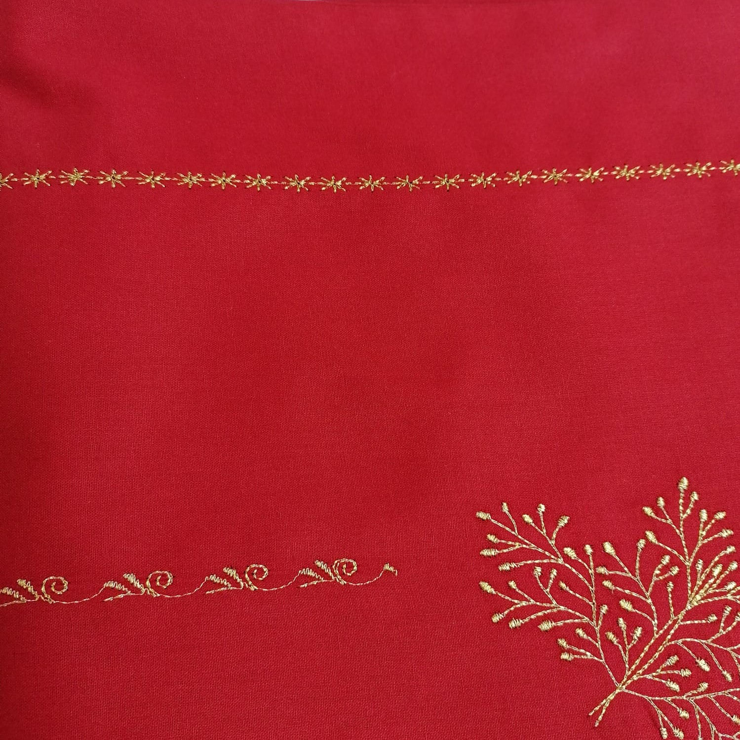 Set 2 Fete perna brodate 45 x 45 cm, Casa Bucuriei, model Festiv, rosu/verde, bumbac ranforce 100%