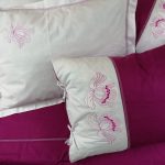 Combinatia intre culori, finisajele in cusaturi decorative si broderia, au capacitatea de a energiza o camera si de a crea o atmosfera aerisita, delicata si placuta, unde veti avea senzatia ca respirati aer curat. Pentru a intregi nivelul de confort si din punct de vedere senzitiv, nu doar vizual, materialul folosit pentru confectionarea fetei de perna, bumbacul natural fabricat din planta cu acelasi nume, este un produs non-alergen si poate reprezenta alegerea potrivita de material textil, chiar si pentru copii sau persoanele cu pielea sensibila.