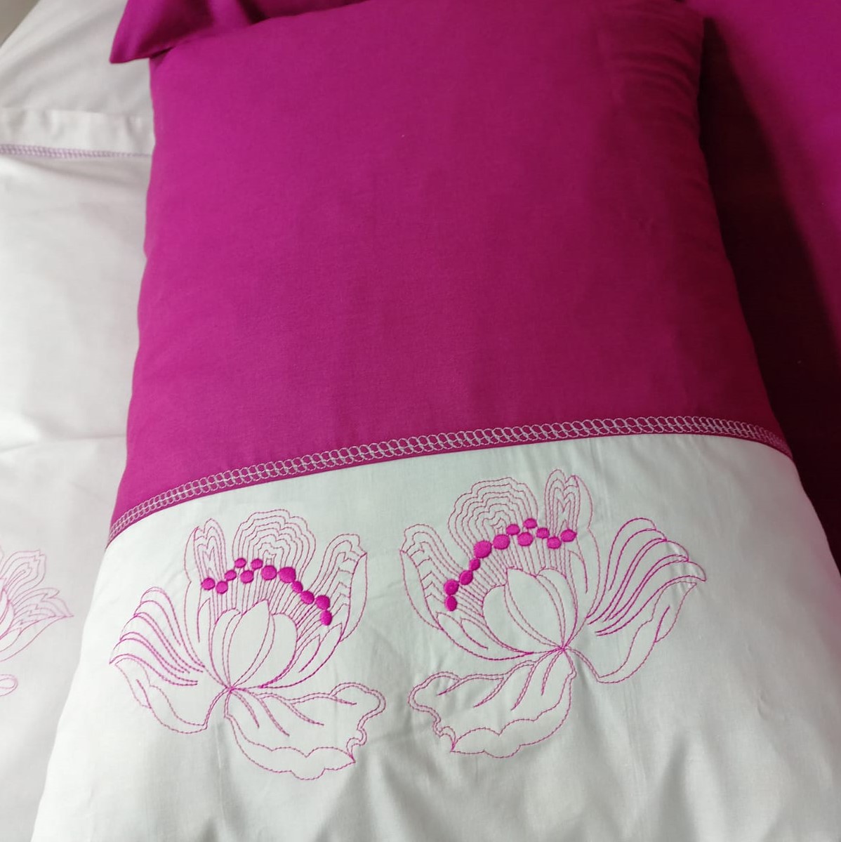Setul de fete de perna este lucrat manual cu grija la fiecare detaliu in atelierul nostru.