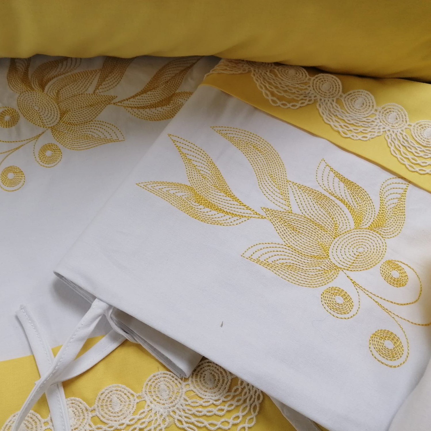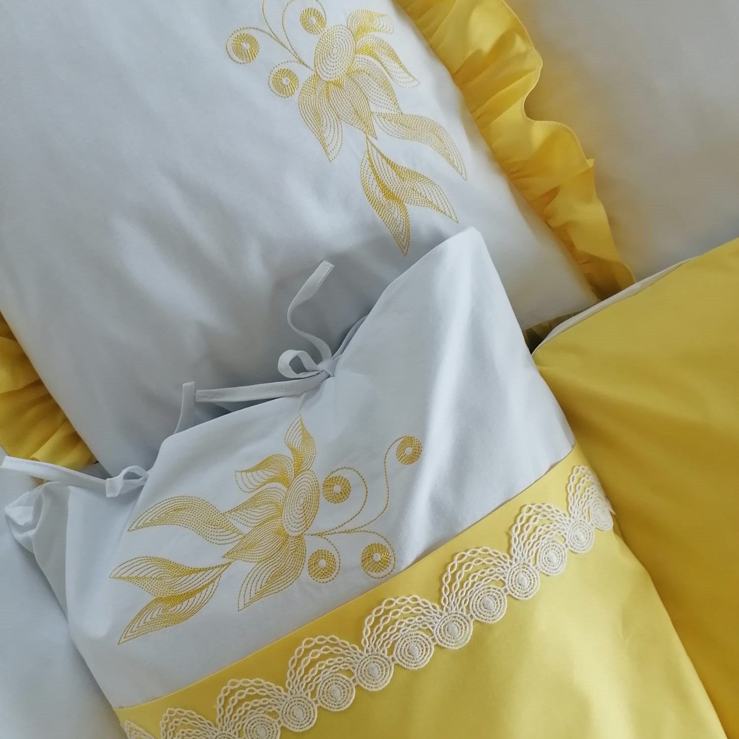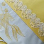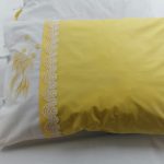 Set 2 Fete perna brodate 50 x 70 cm, Casa Bucuriei, model Clasic Design, alb/galben, bumbac 100%, doua fete