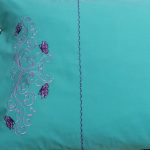 Set 2 Fete perna brodate 50 x 80 cm, Casa Bucuriei, model Eva, verde turcoaz/mov, bumbac ranforce 100%, doua fete
