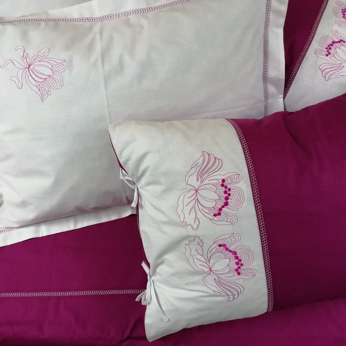 Fii primul care scrii o recenzie pentru „Set 2 Fete perna brodate 50 x 85 cm, Casa Bucuriei, model Iris, fucsia/alb, bumbac ranforce 100%, doua fete”