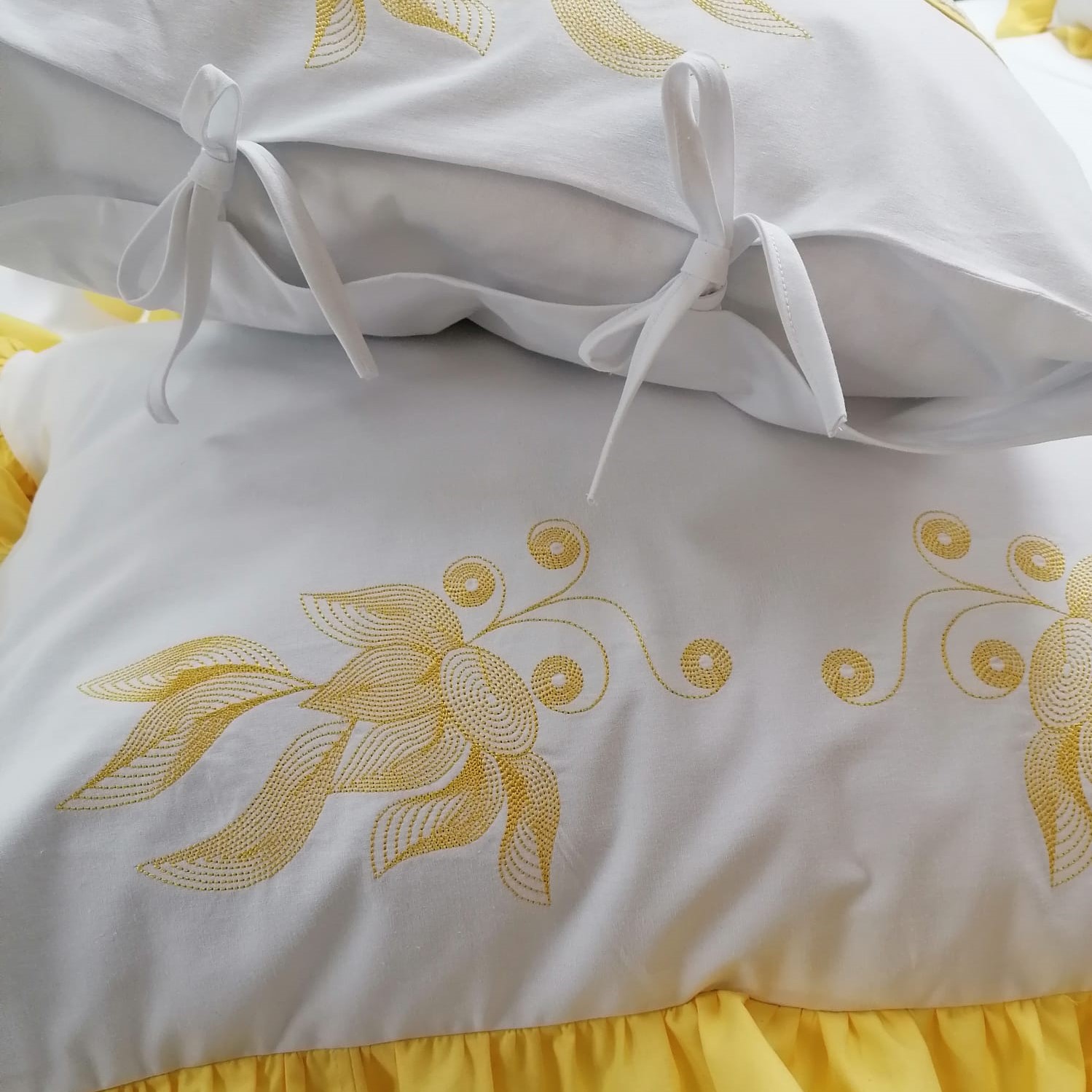 Setul de fete de perna este lucrat manual cu grija la fiecare detaliu in atelierul nostru.