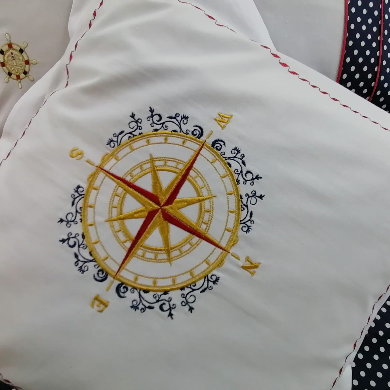 Set 2 Fete perna brodate 70 x 70 cm, Casa Bucuriei, model Navy, alb, bumbac 100%