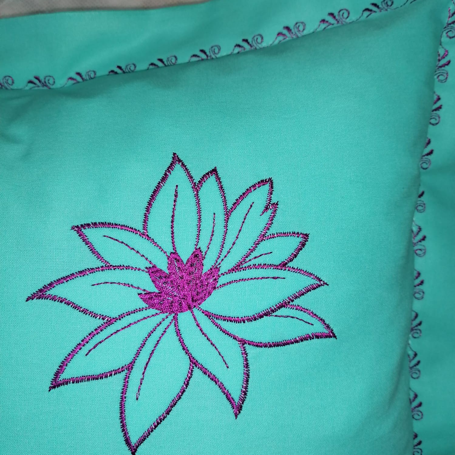 Combinatia extrem de vie si vesela intre culori, finisajele in cusaturi decorative si broderia, au capacitatea de a energiza o camera si de a crea o atmosfera aerisita, delicata si placuta, unde veti avea senzatia ca respirati aer curat. Pentru a intregi nivelul de confort si din punct de vedere senzitiv, nu doar vizual, materialul folosit pentru confectionarea fetei de perna, bumbacul natural fabricat din planta cu acelasi nume, este un produs non-alergen si poate reprezenta alegerea potrivita de material textil, chiar si pentru copii sau persoanele cu pielea sensibila.