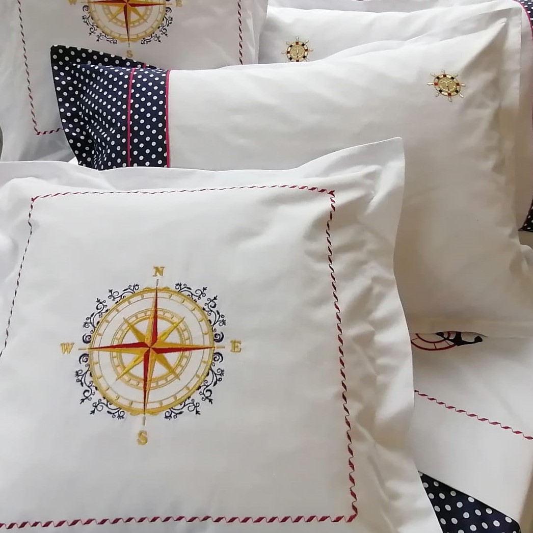 Fii primul care scrii o recenzie pentru „Set 2 Fete perna brodate Casa Bucuriei, model Navy, alb/bleumarin, bumbac 100%, 50 x 70 cm si 45 x 45 cm”