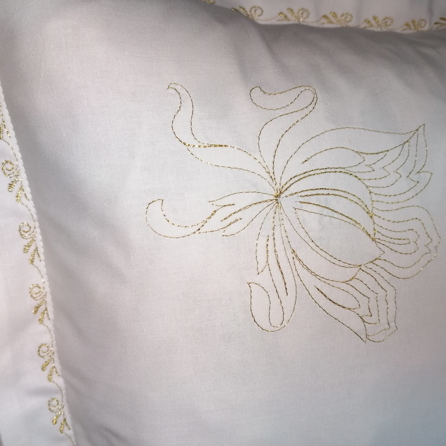 Fii primul care scrii o recenzie pentru „Set 2 Fete perna, Casa Bucuriei, model Clasic Iris, alb/auriu, bumbac 100%, 80 x 80 cm”