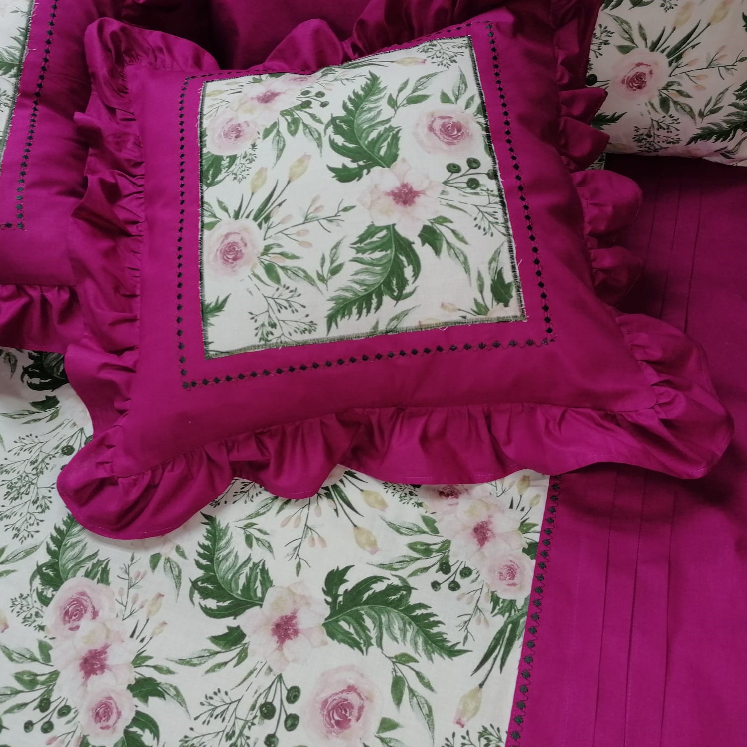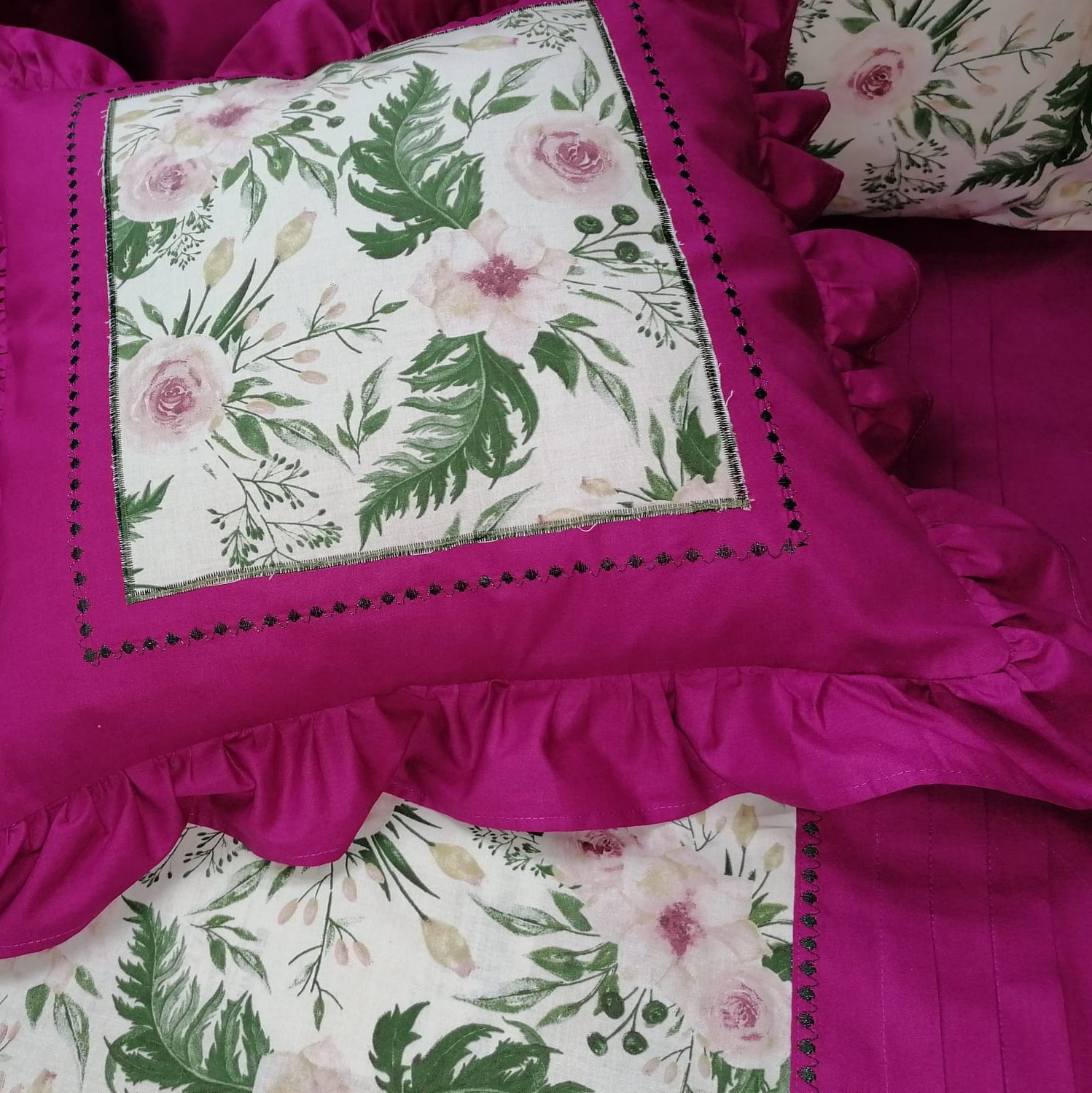 Combinatia extrem de vie si vesela intre culori, finisajele in cusaturi decorative si volanase, au capacitatea de a energiza o camera si de a crea o atmosfera aerisita, delicata si placuta, unde veti avea senzatia ca respirati aer curat. Culoarea roz fucsia are atat proprietati estetice cat si terapeutice, promitand un decor interior sic si rafinat, feminin.