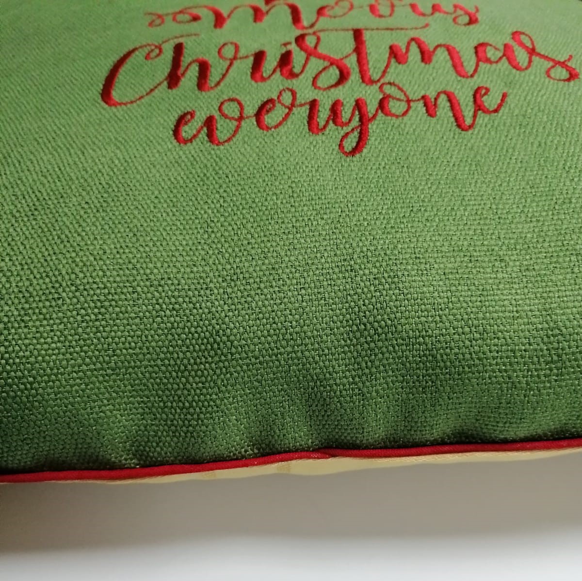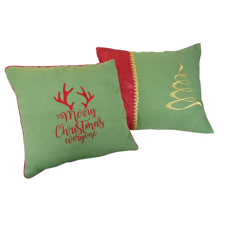 Setul de perne decorative de sarbatori, cu broderie bradut design, mesaj de Craciun si detalii aplicate,va aduce in orice incapere caldura si confera caminului dumneavoastra o atmosfera veritabila de sarbatori.