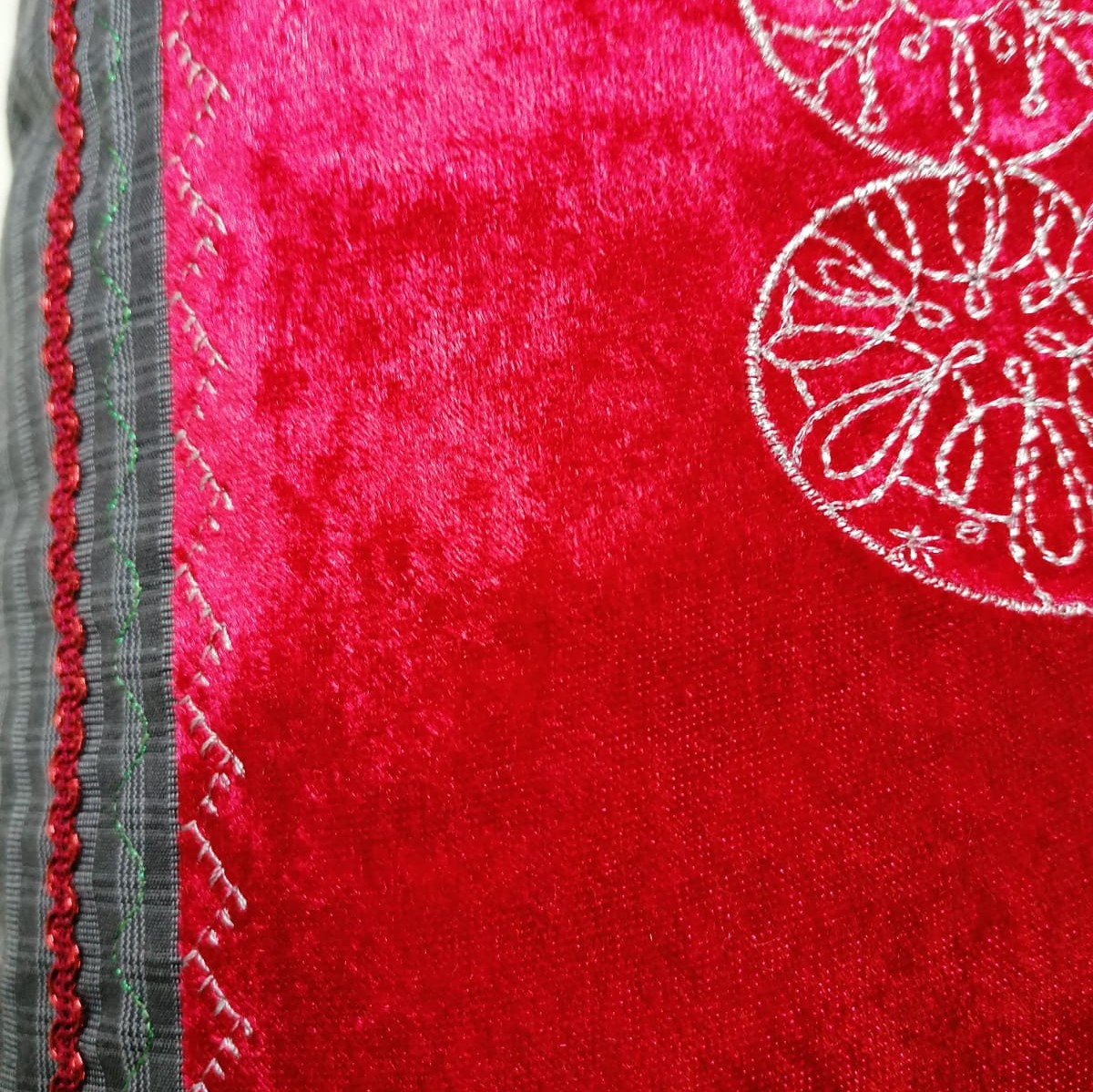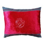 Set 2 perne decorative cusatura argintiu si broderie, rosu/gri, catifea si bumbac, 37×43