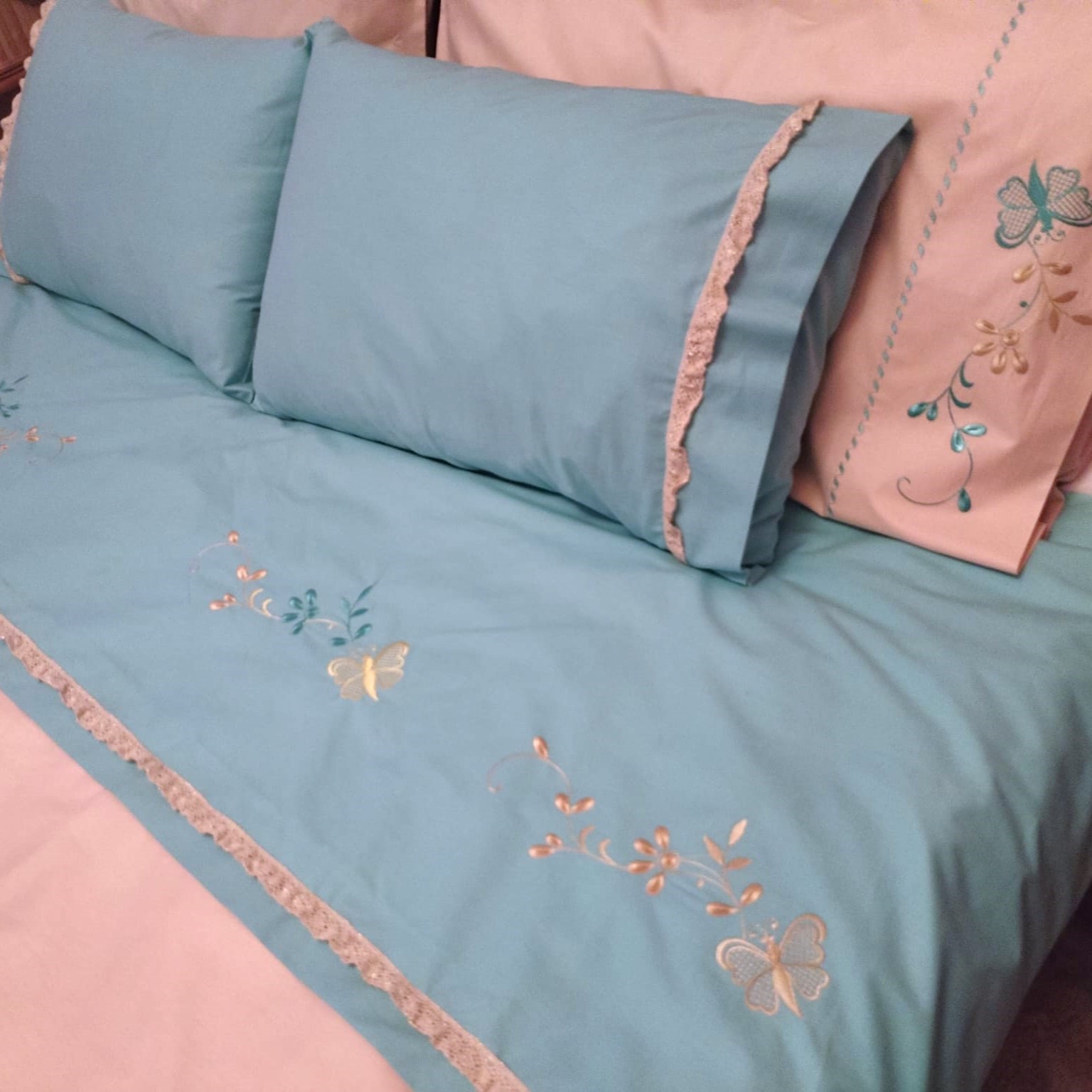 Fii primul care scrii o recenzie pentru „Set 2 x Fata de perna 40 cm x 80 cm, Casa Bucuriei, model Delight, albastru turcoaz, Bumbac 100%, doua fete”