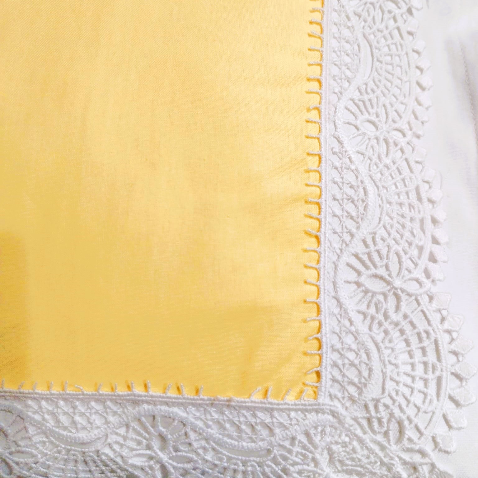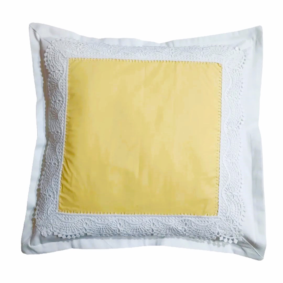 Set 2 x Fata de perna 45 cm x 45 cm, Casa Bucuriei, model Decor, galben/alb, Bumbac 100%