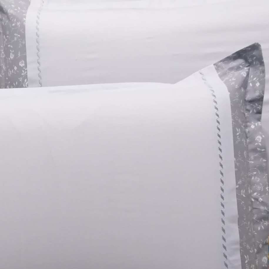 Set 2 x Fata de perna 50 cm x 70 cm, Casa Bucuriei, model Eva, gri deschis, Bumbac 100%