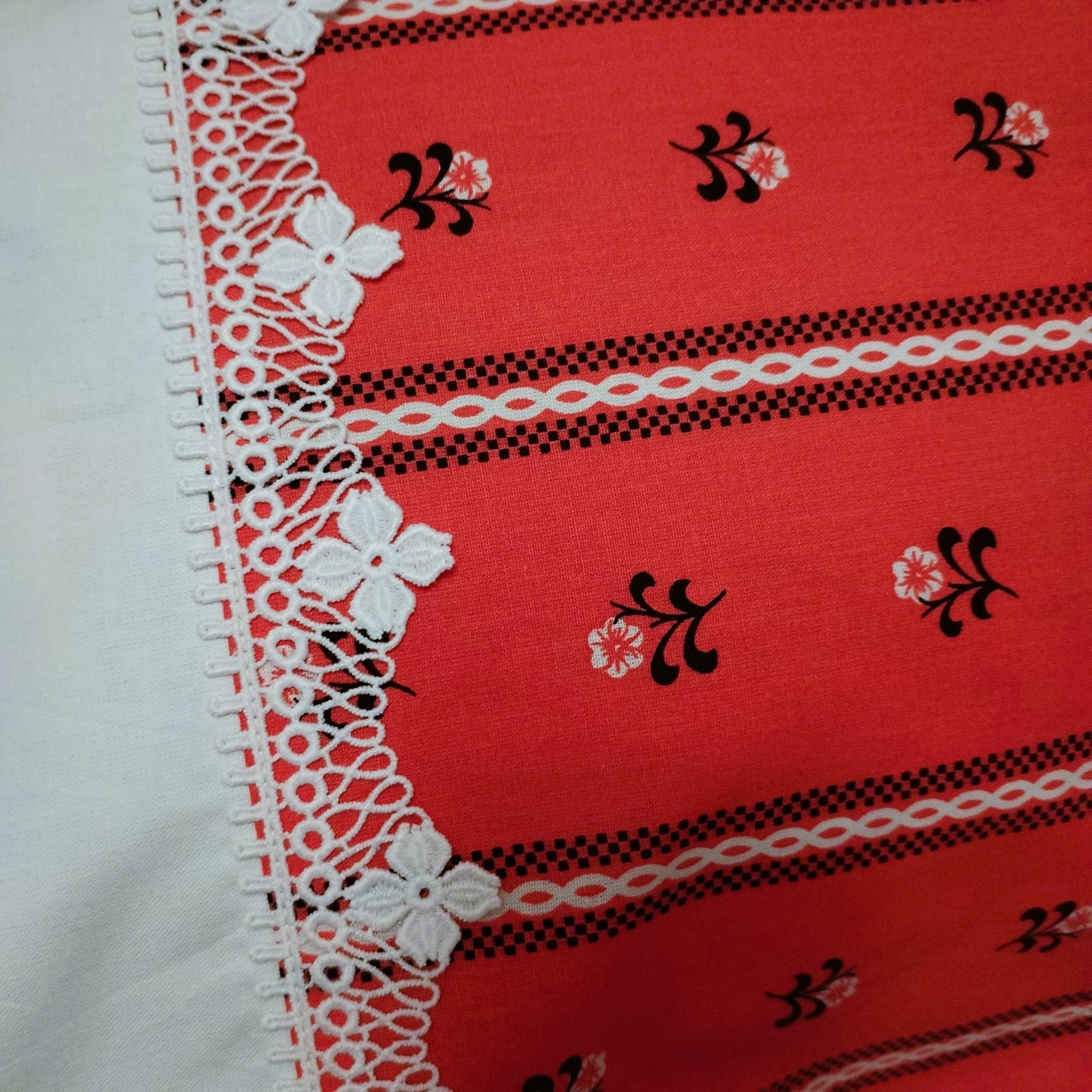 Fii primul care scrii o recenzie pentru „Set 2 x Fata de perna 50 cm x 70 cm, Casa Bucuriei, model Flower Lines, rosu/alb, Bumbac 100%, doua fete”