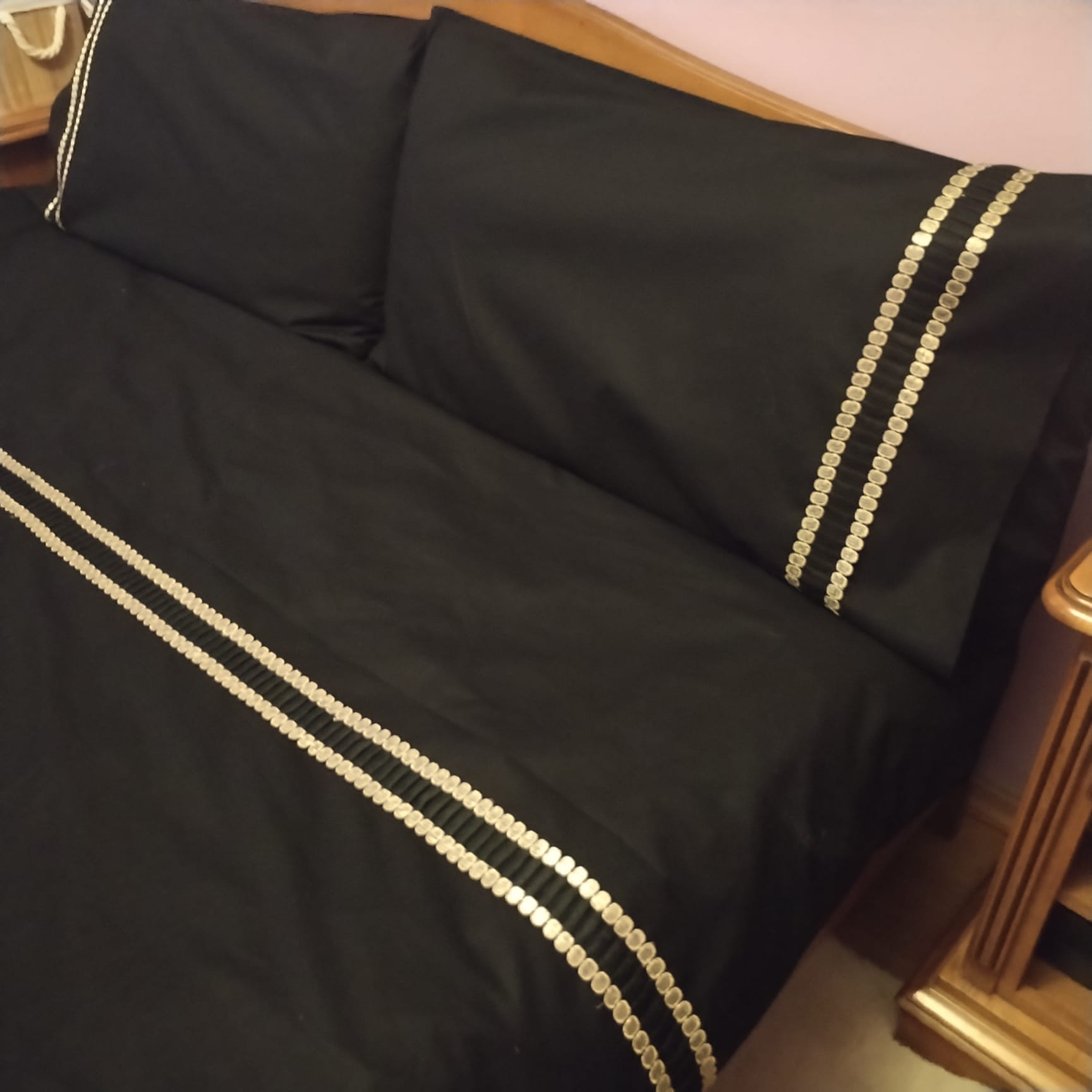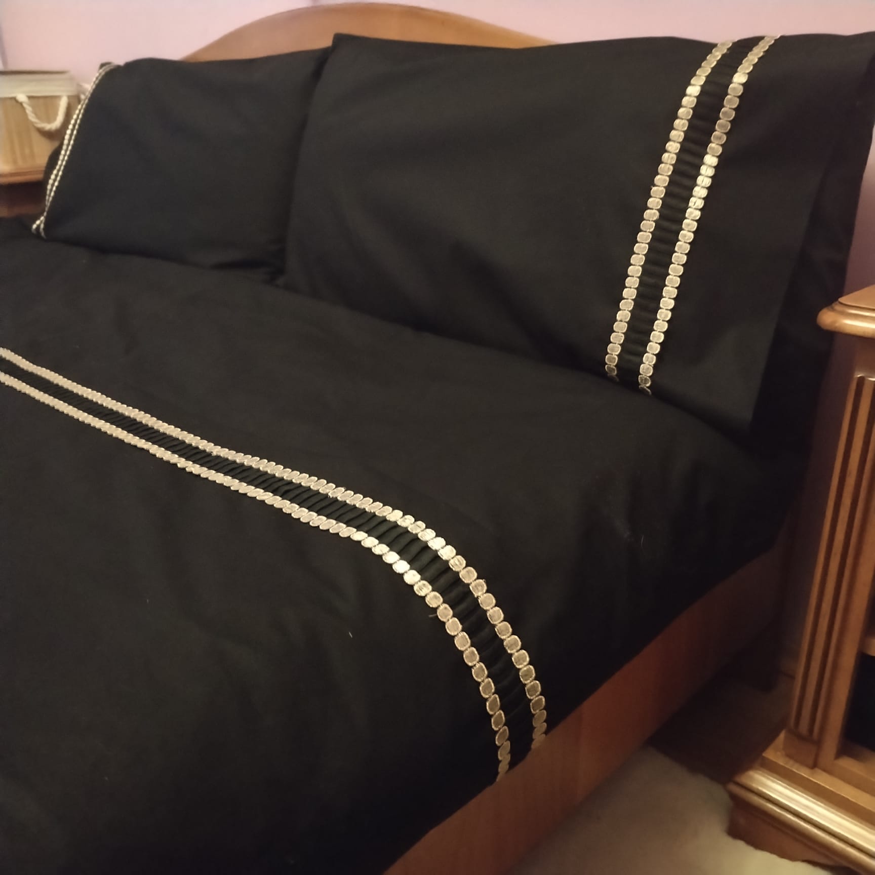 Set 2 x Fata de perna 50 cm x 80 cm, Casa Bucuriei, model Lux, negru, Bumbac 100%, doua fete