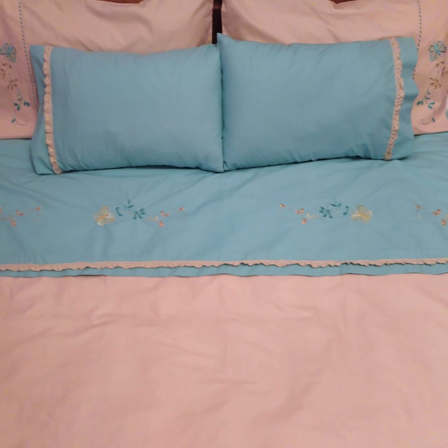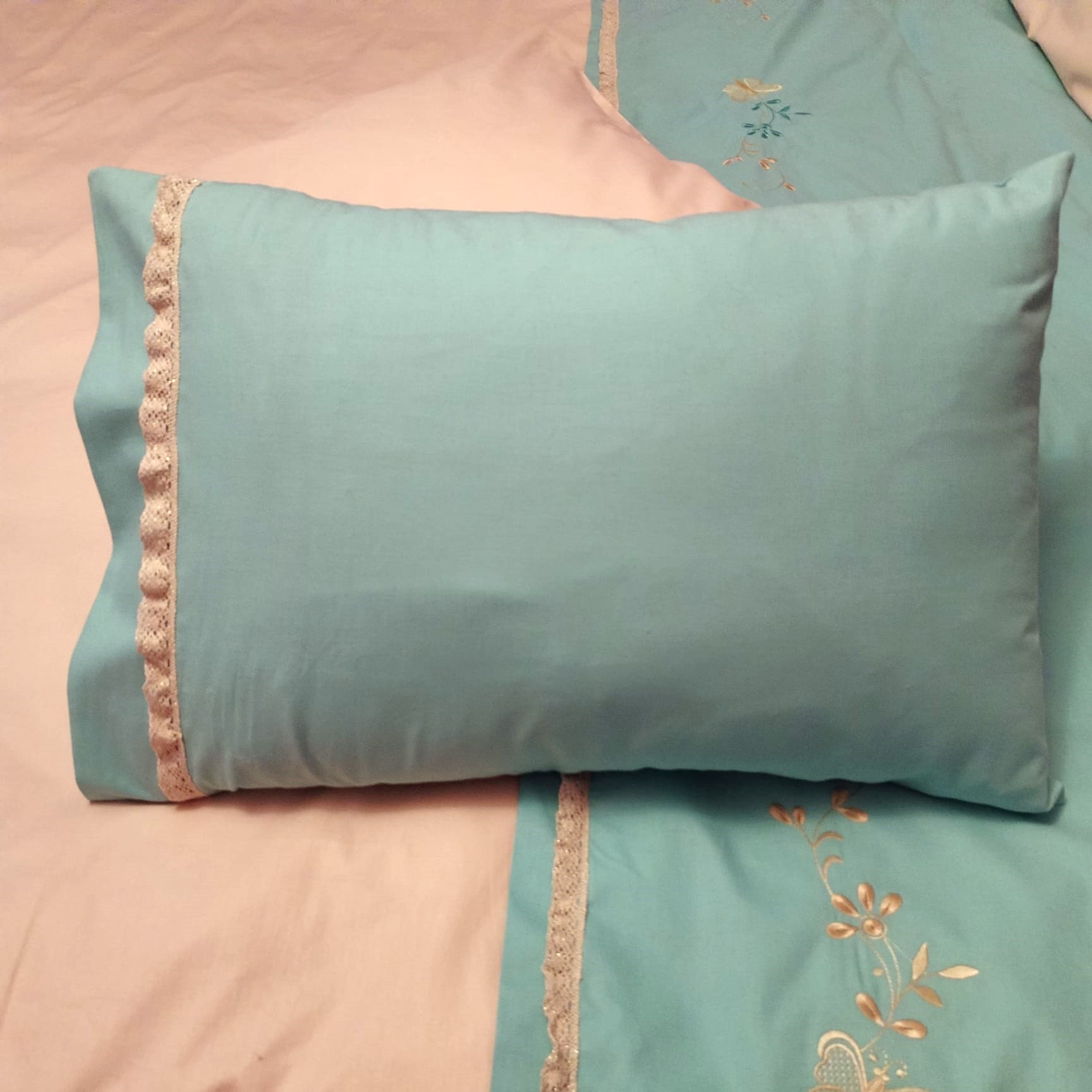 Set 2 x Fata de perna 60 cm x 70 cm, Casa Bucuriei, model Delight, albastru turcoaz, Bumbac 100%, doua fete