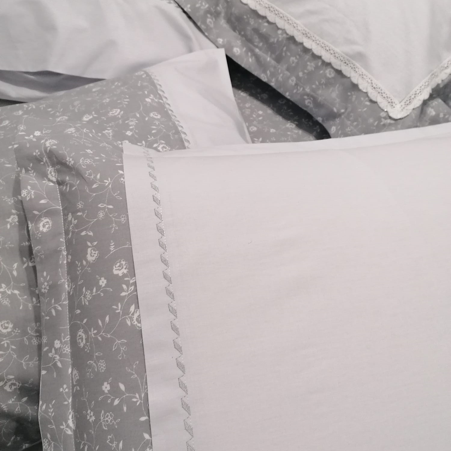 Set 2 x Fata de perna 70 cm x 70 cm, Casa Bucuriei, model Eva, gri deschis, Bumbac 100%