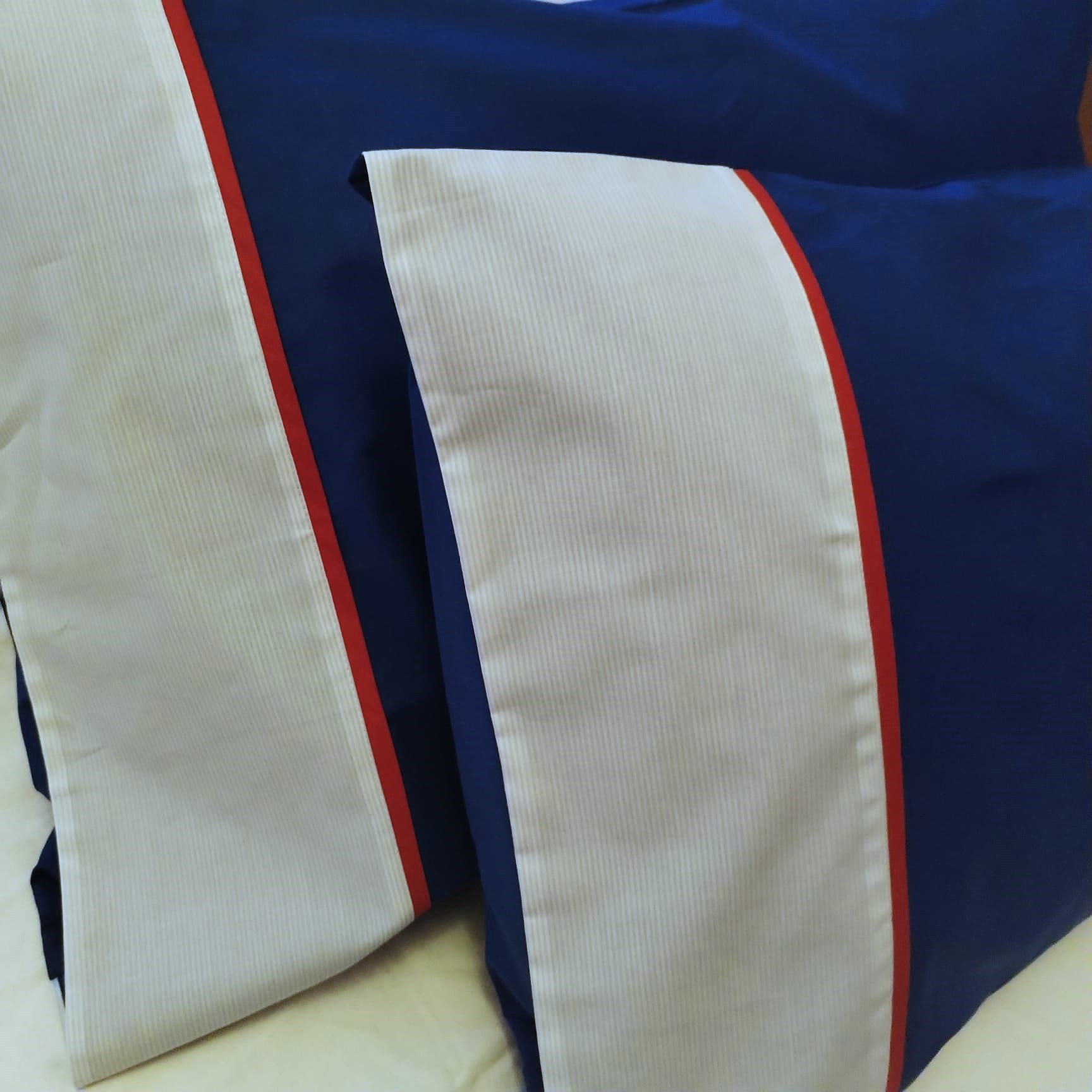 Set 2 x Fata de perna brodate, 50 cm x 80 cm, Casa Bucuriei, model Marin, albastru regal, Bumbac 100%, doua fete