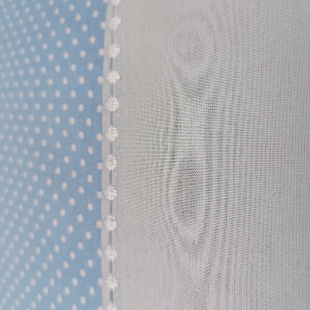 Combinatia extrem de vie si vesela intre culorile alb si albastru cerului, broderia si finisajele in cusaturi decorative si insertii cu buline, au capacitatea de a energiza o camera si de a crea o atmosfera aerisita, delicata si placuta, unde veti avea senzatia ca respirati aer curat in locuinta d-voastra.