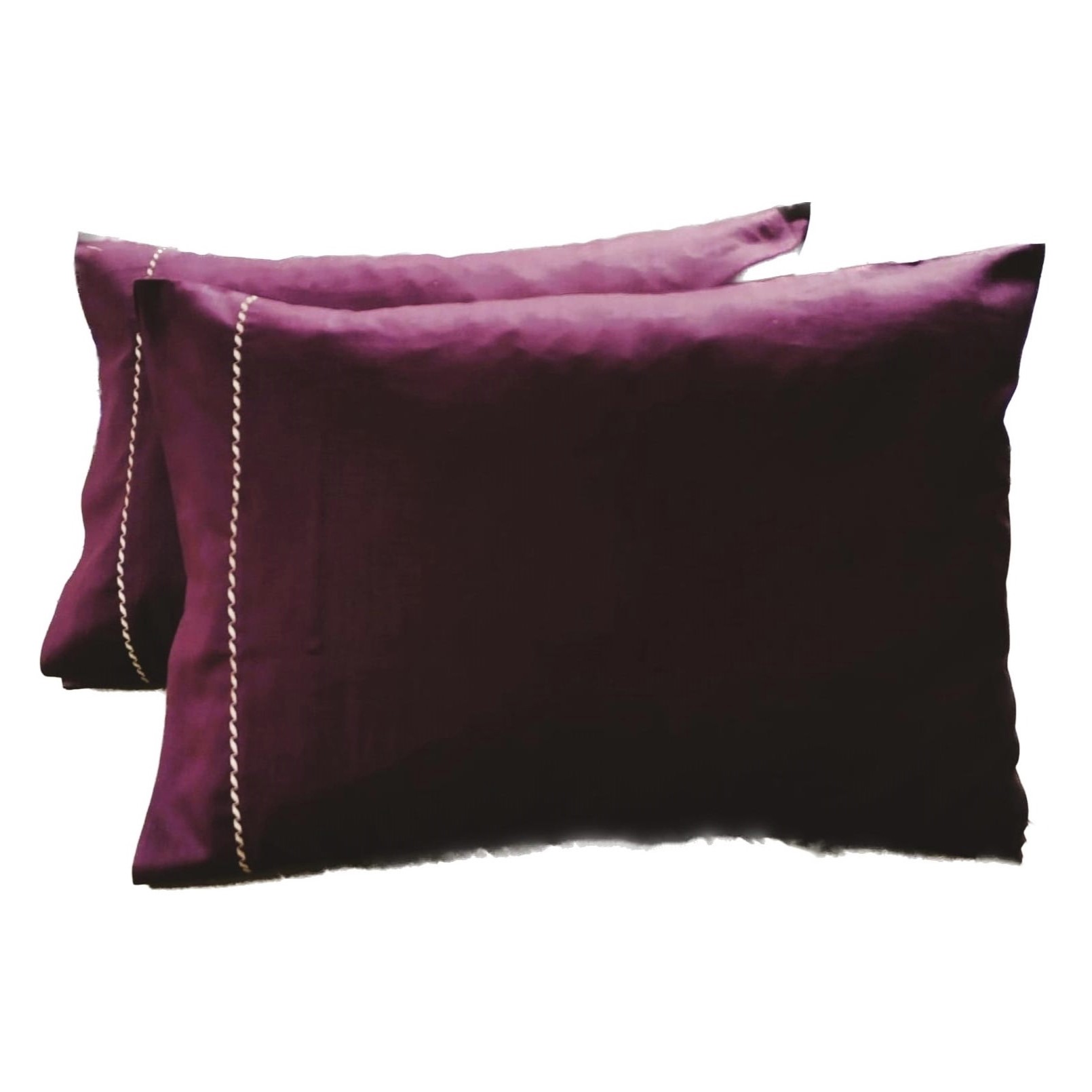Set 2 x Fata de perna cu detalii brodate, 50 cm x 70 cm, Casa Bucuriei, model Simple Lines, visiniu, Bumbac 100%, doua fete