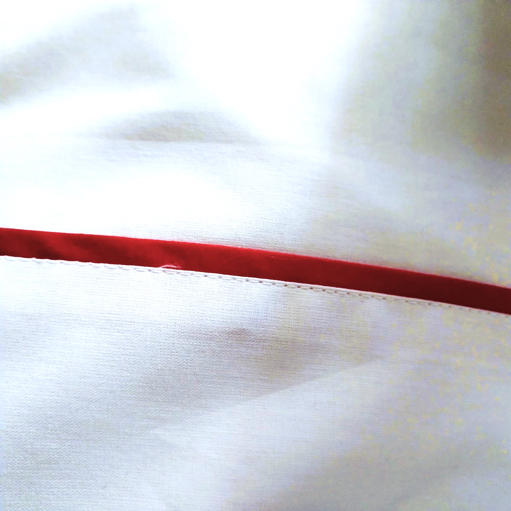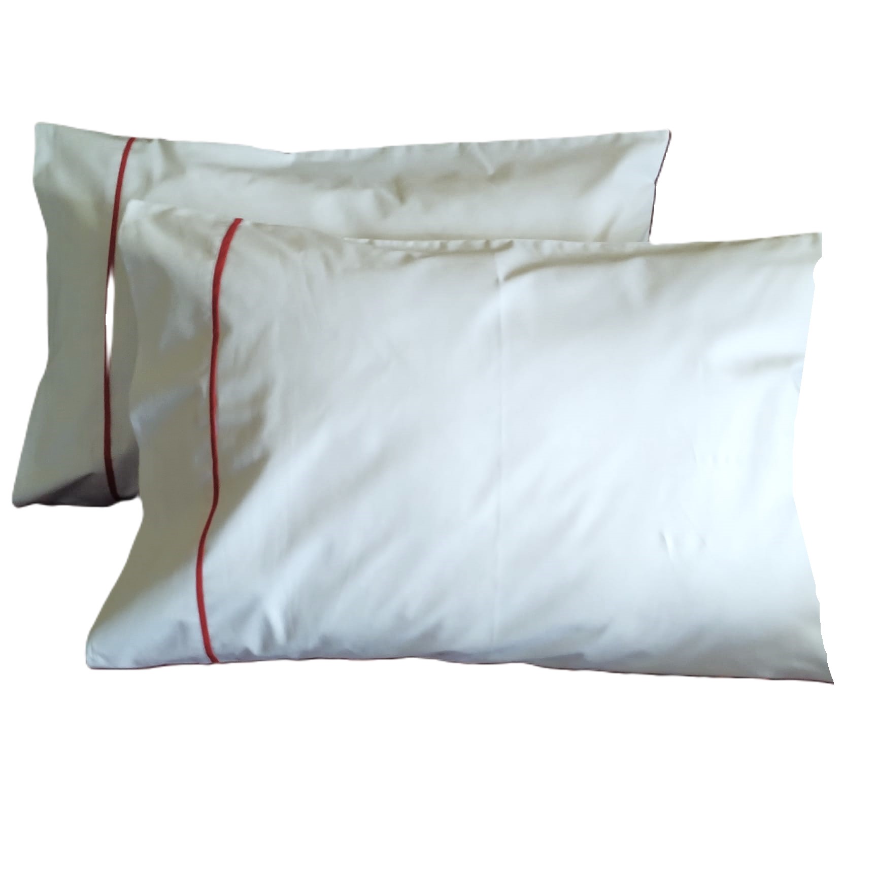 Set 2 x Fata de perna cu paspoal, 50 cm x 90 cm, Casa Bucuriei, alb/rosu, Bumbac 100%, doua fete