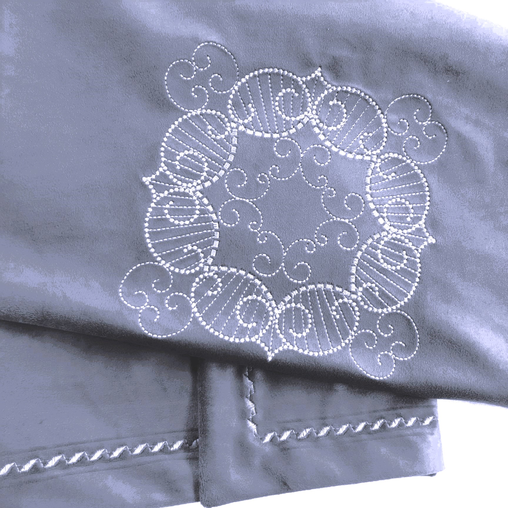 Set 2 x Fata de perna decorativa brodata, 40 cm x 60 cm, Casa Bucuriei, model Mandala, gri, catifea