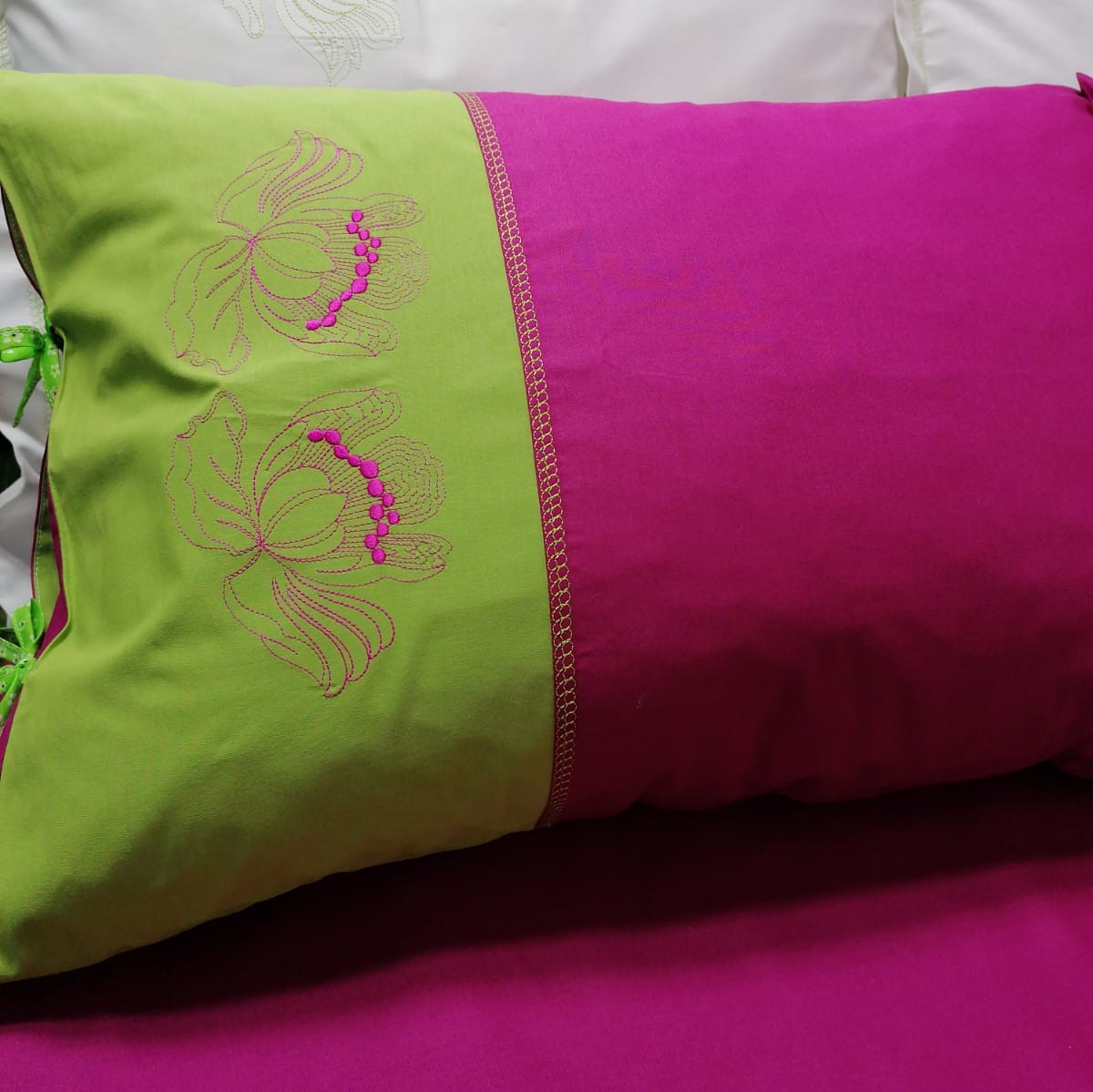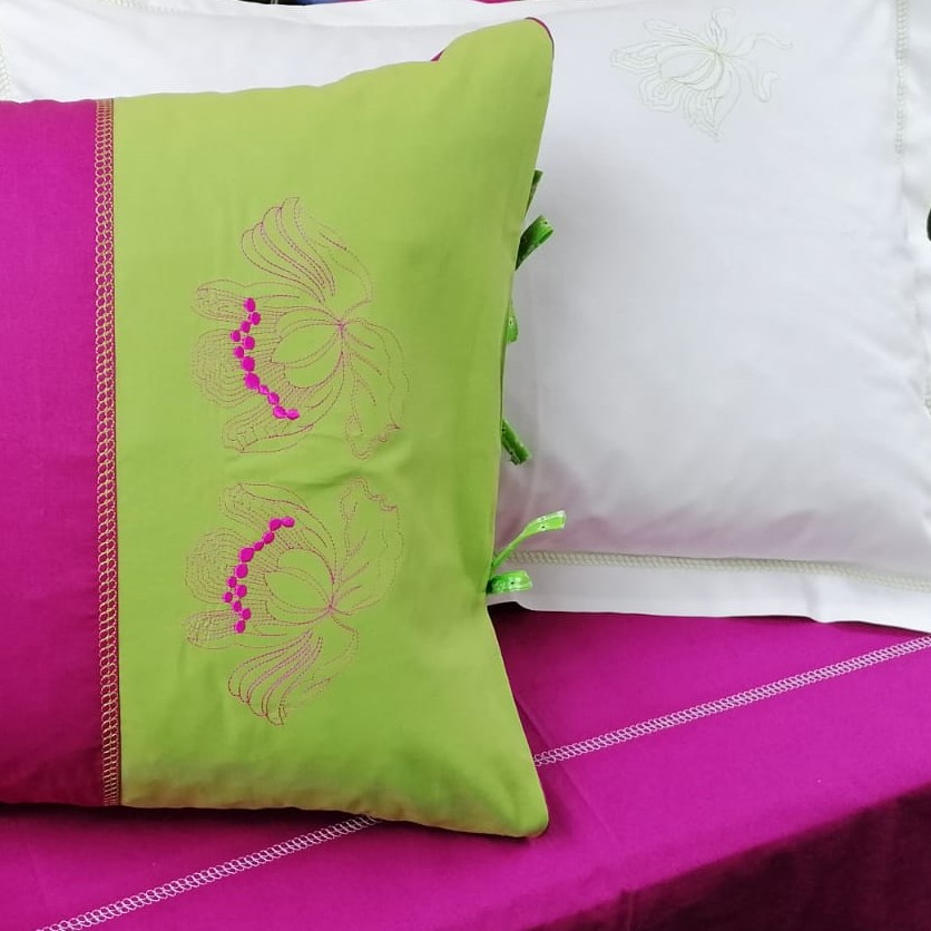 Combinatia extrem de vie si vesela intre culorile verde /fucsia, broderia si contrastul de culori, au capacitatea de a energiza o camera si de a crea o atmosfera favorabila visatului cu ochii deschisi.