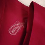 Culoare:Viva Magenta si broderia este realizata cu ata gri deschis.