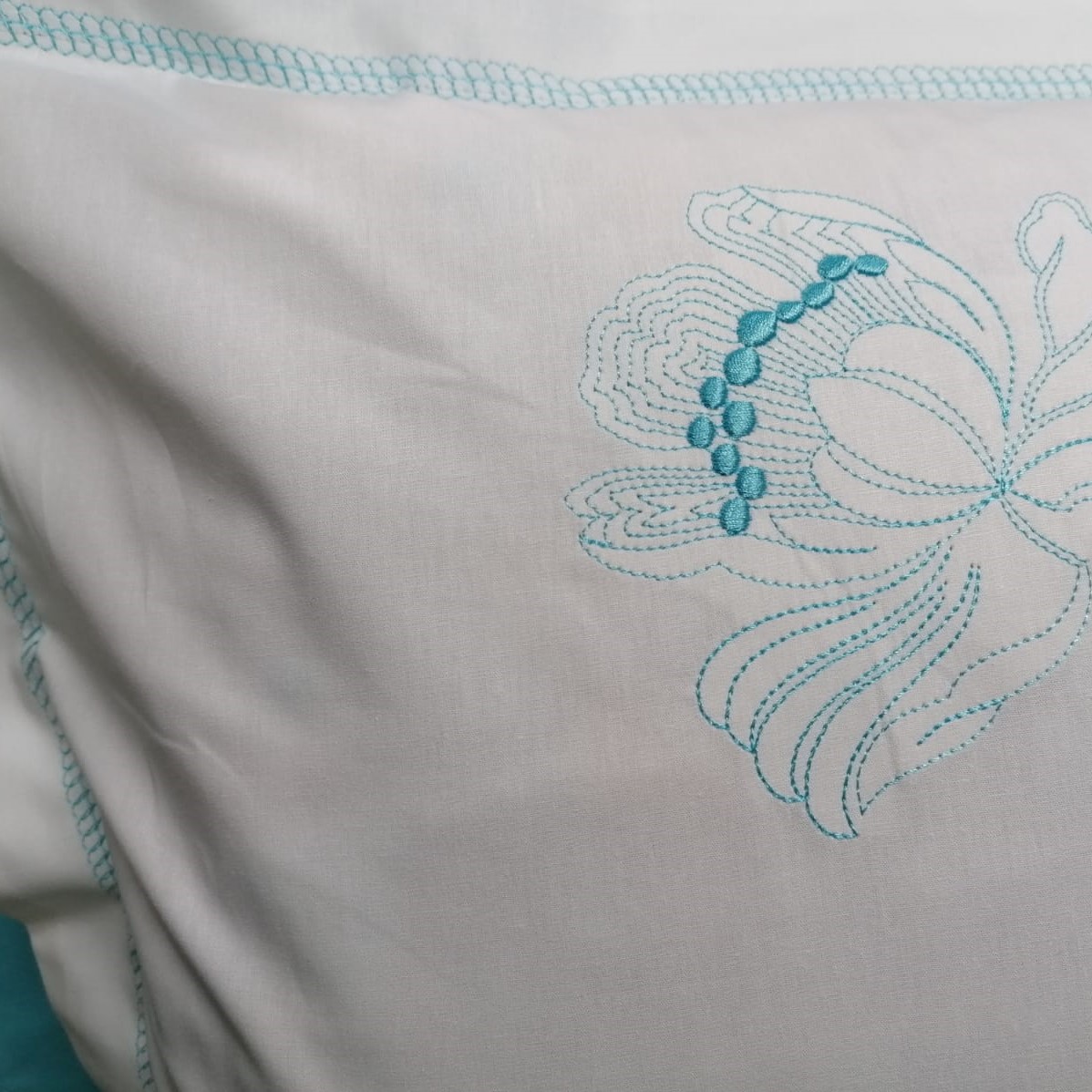 Combinatia extrem de vie si vesela intre culorile alb si albastru turcoaz, broderia si finisajele in cusaturi decorative, au capacitatea de a energiza o camera si de a crea o atmosfera aerisita, delicata si placuta, unde veti avea senzatia ca respirati aer curat in locuinta d-voastra.