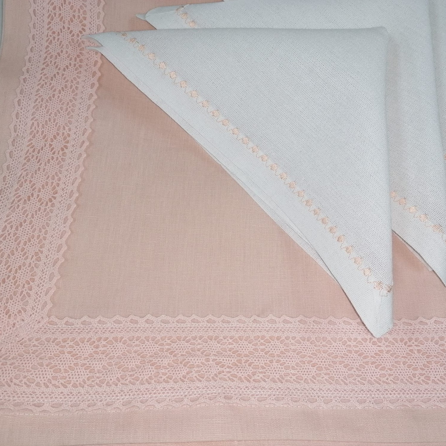 Modelul deosebit si elegant, tesatura din in cu bumbac, precum si bordura ornamentata cu dantela crosetata din bumbac, vor da un aer aparte intregii incaperi, intregind bucuria si buna dispozitie specifice petrecerilor sau reuniunilor in familie.